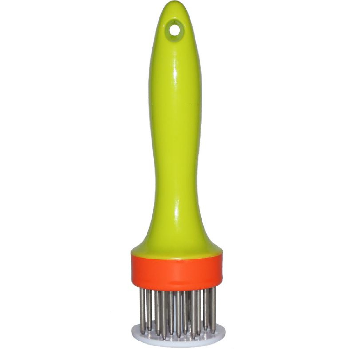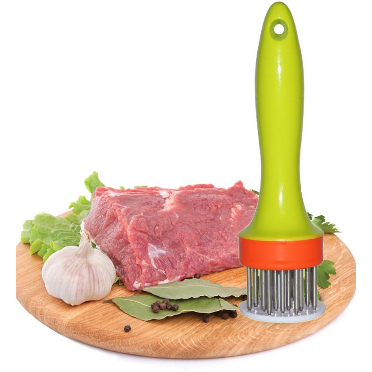 Современный инструмент для обработки и натурального размягчения мяса или рыбы. Тендерайзер с технологией игольчатых лезвий и защитной насадкой для лезвий, позволяет обрабатывать мясо и рыбу без шума и брызг, сокращает время маринования на 70% и время жарки, приготовления в духовке или гриле на 50%. В отличие от отбивания мяса молотком, при использовании этого приспособления, мясо остается такой же толщины и таким же сочным. Отличный результат - сочное и нежное мясо. Размер: Ø5 см, высота 19 см. Изготовлен из нержавеющей стали с черным пластиковым корпусом. Упаковано в фирменную цветную коробку.