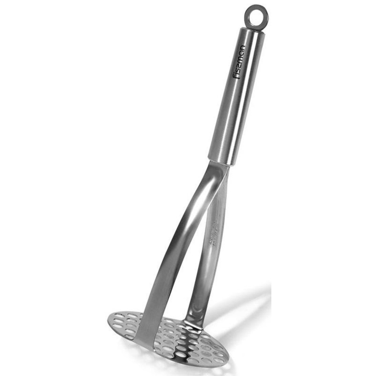 Прес для картоплі Fissman Zonda. Готуйте професійно! Міцний і надійний кухонний інструмент. Виготовлений з високоякісної нержавіючої сталі - стійкий до корозії і окислення при контакті з їжею. Сталь не фарбується і не вбирає запахи, не змінює смак і аромат продуктів. Витримує високі температури. Повністю безпечно при контакті з їжею будь-якого типу. Надійна сталева ручка з кільцем для зручного зберігання і підвішування. Довжина преса 24см. Можна мити в посудомийній машині.