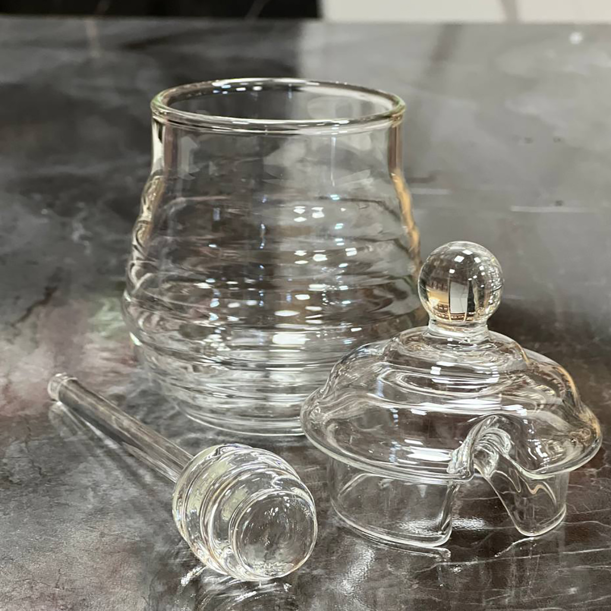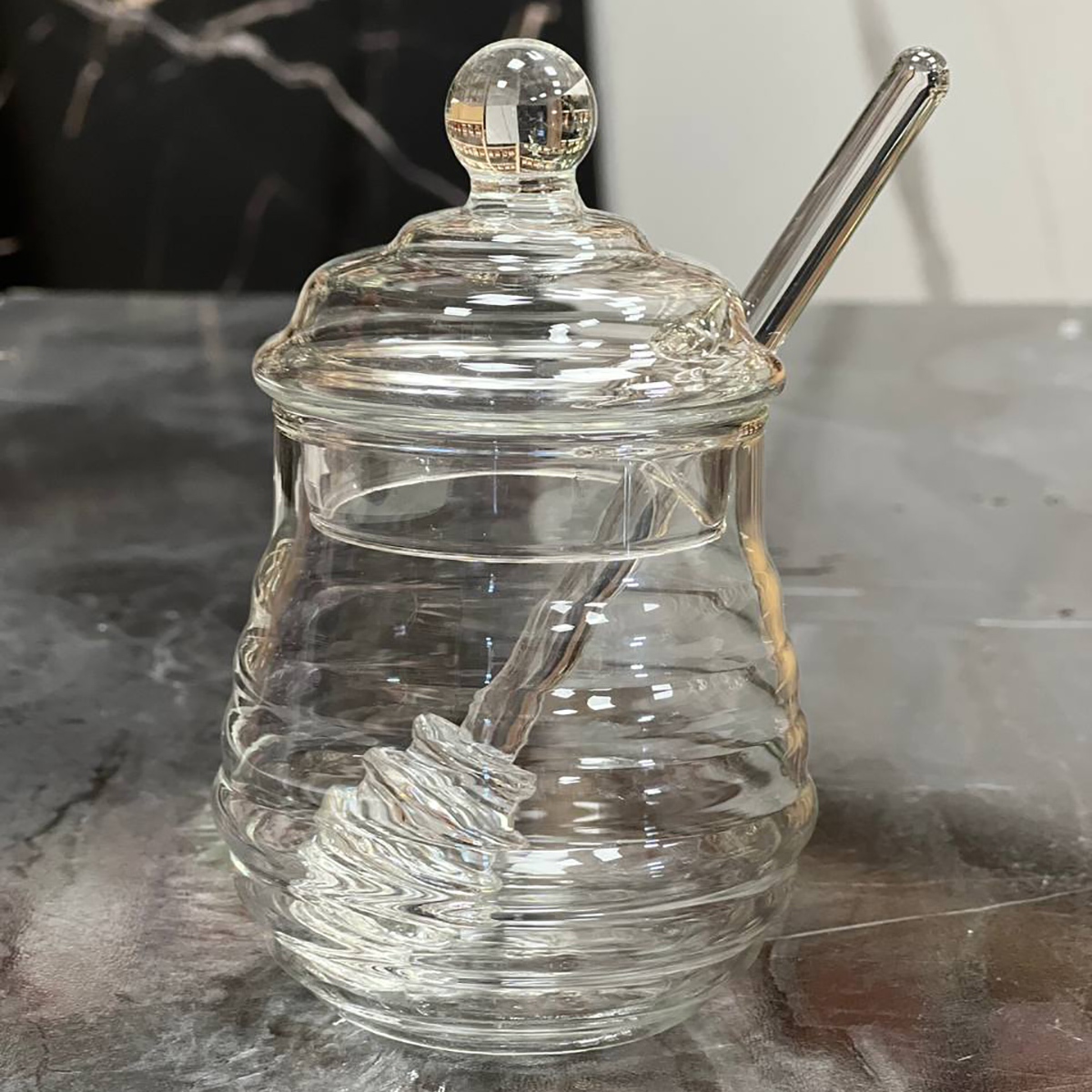 Стильна банка Honey Hive — ідеальне рішення для зберігання та подачі меду. Її оригінальний дизайн у вигляді бджолиних сот додає естетики та створює атмосферу затишку на кухні чи під час сервірування столу.