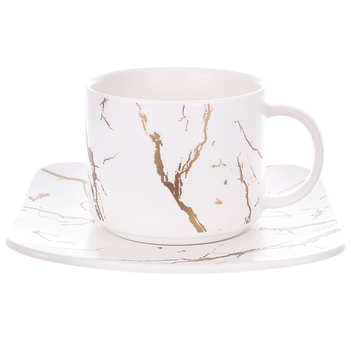 Чашка с блюдцем 250 мл Мраморная роскошь кофейная белый фарфор