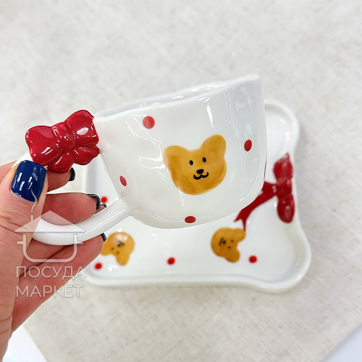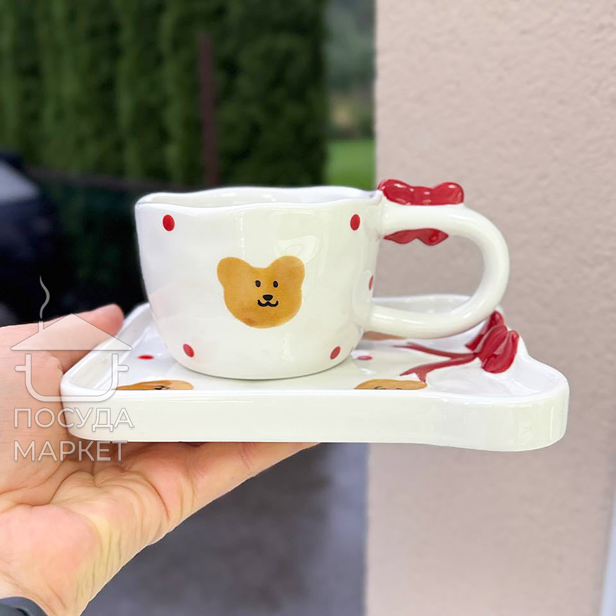 Подаруйте собі трохи затишку з чашкою зі блюдцем "Банти і мішки".