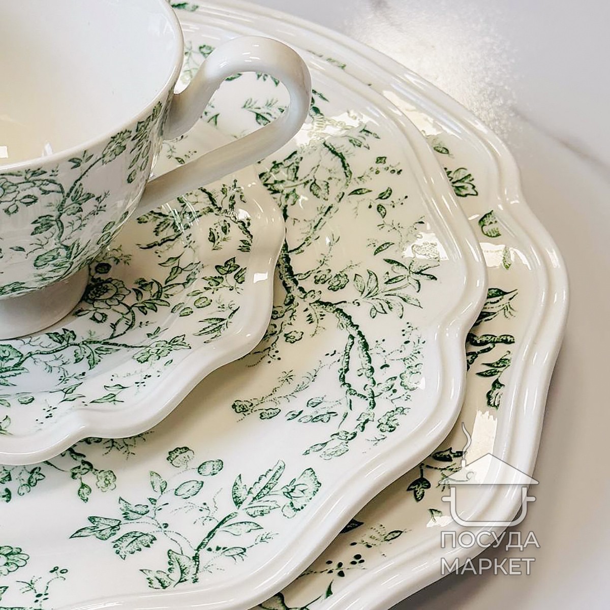 Чашка з блюдцем Meadow Grace – ідеальне поєднання елегантності та затишку у кожному ковтку. Виготовлена з білосніжної порцеляни та прикрашена ніжним зеленим орнаментом, ця чашка робить момент чаю або кави особливим.