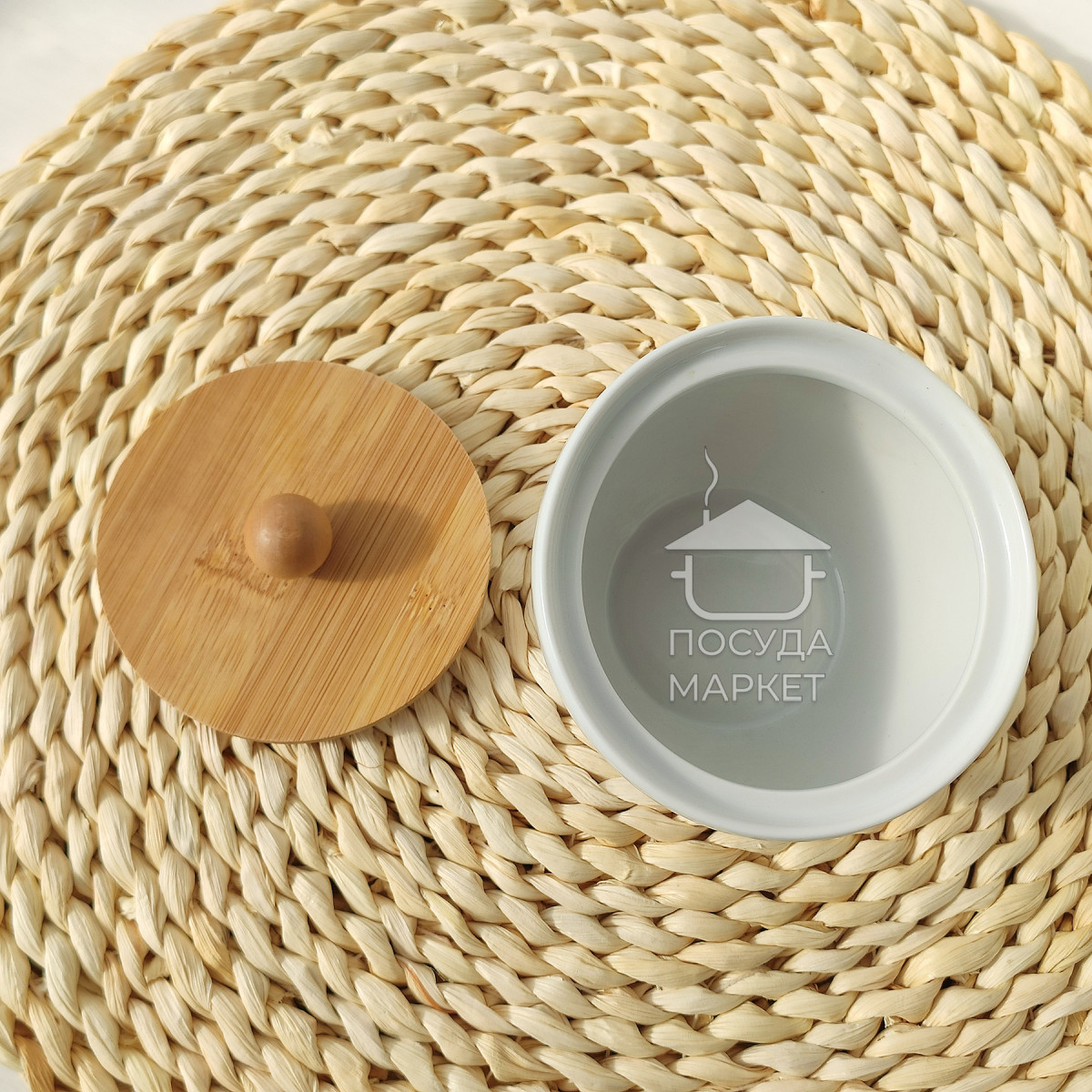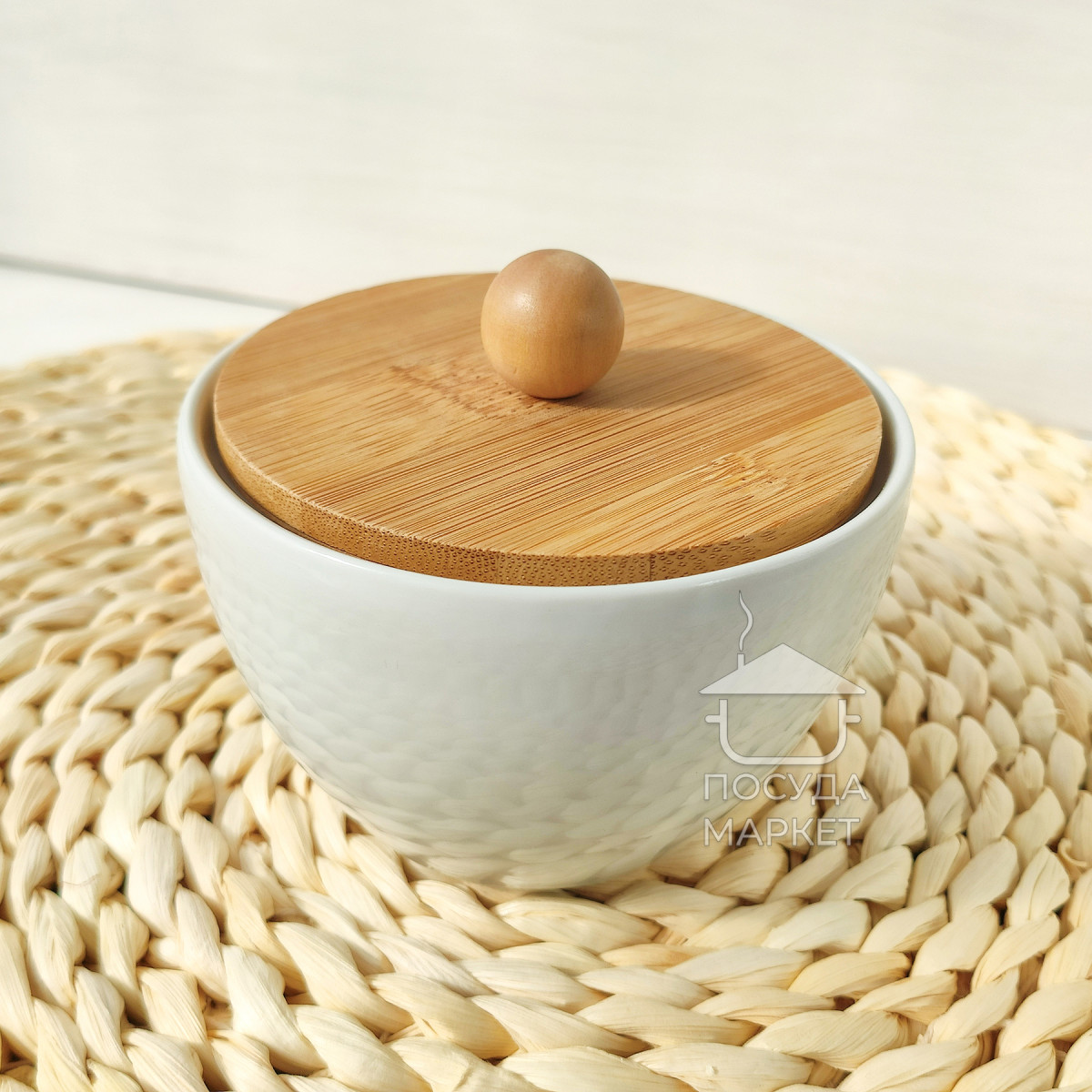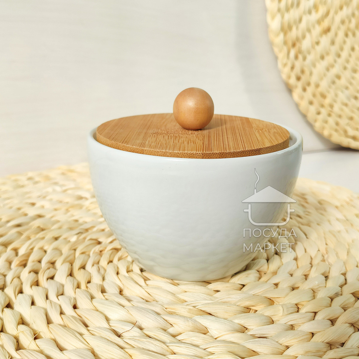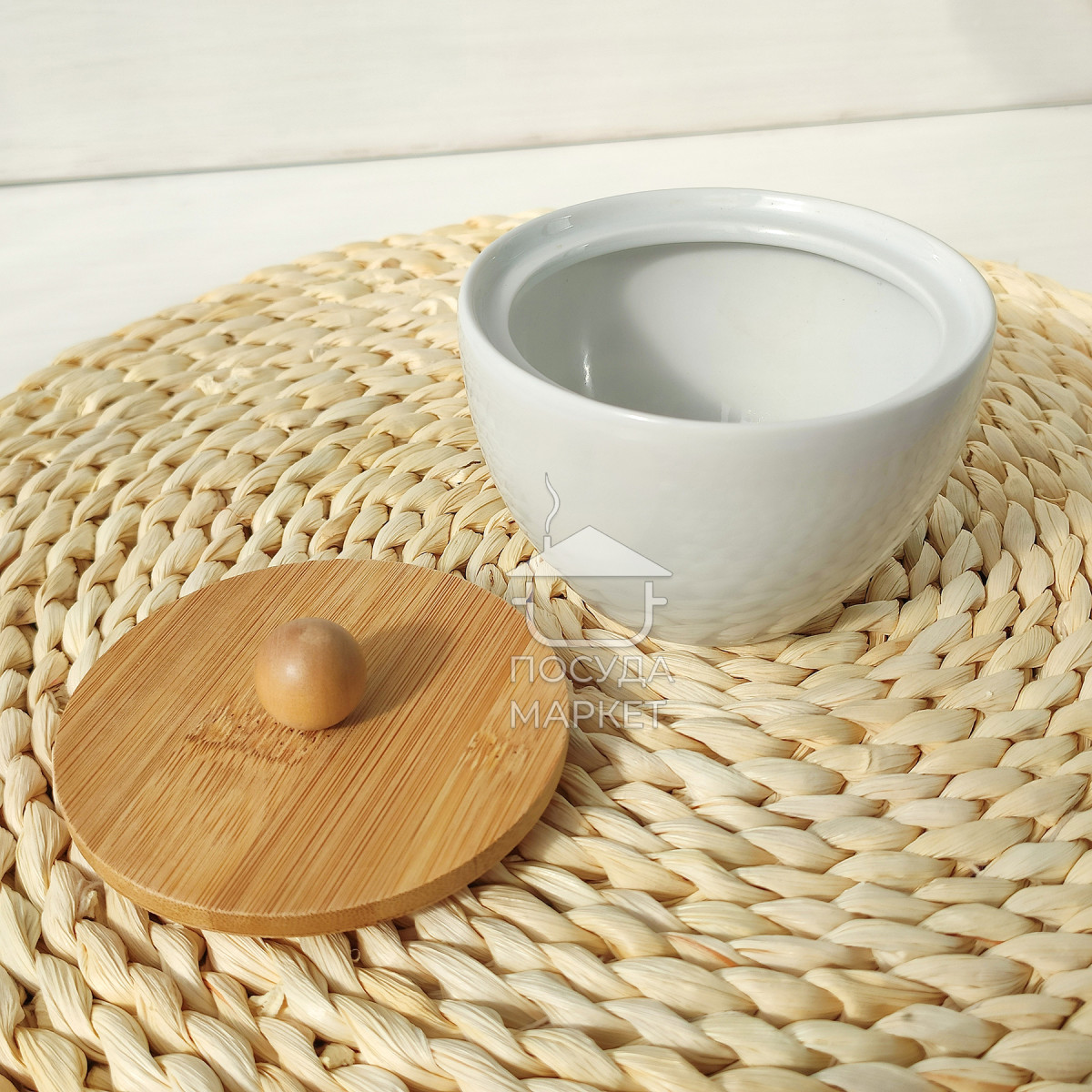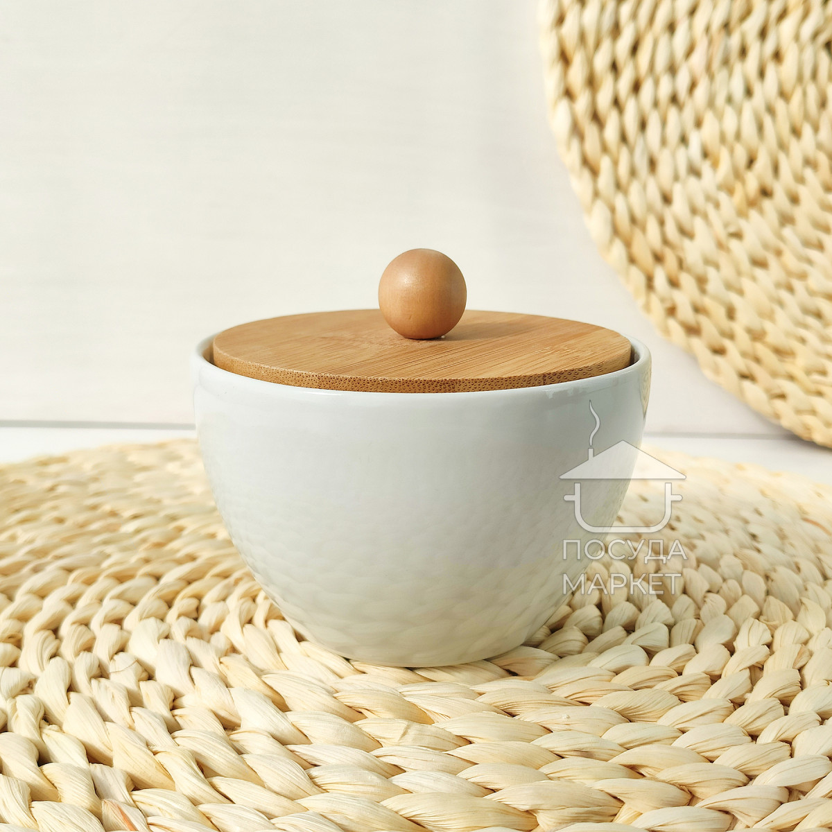 Цукорниця керамічна Scandi Minimal 200мл біла з бамбуковою кришкою