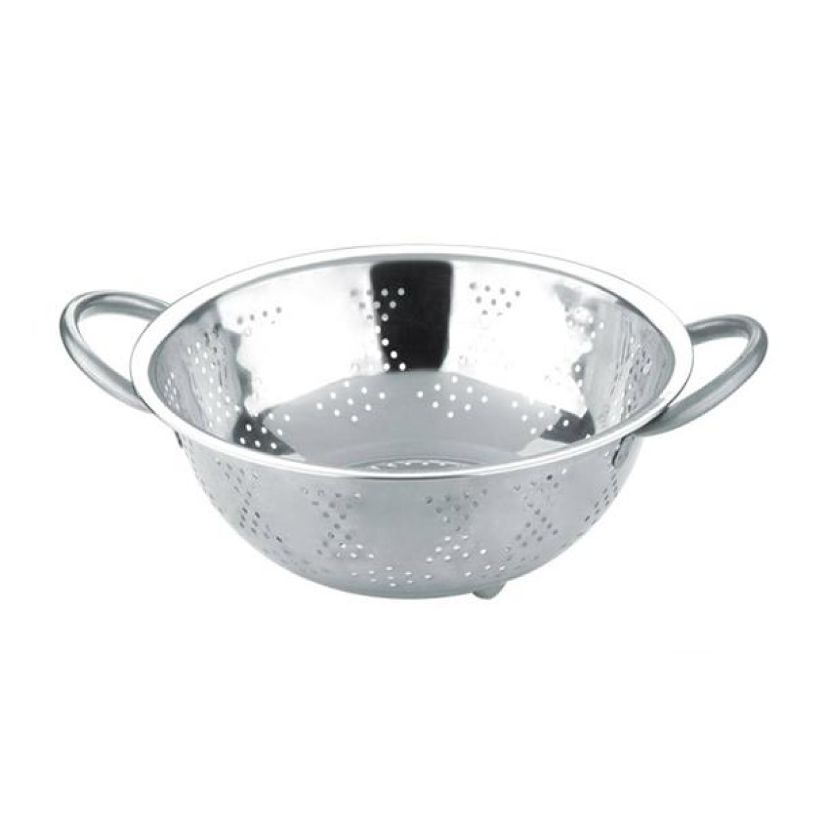 Дуршлаг Kamille GerStyle из нержавеющей стали. Верхний диаметр 18см, высота 7см. Незаменимый атрибут при сливе и сцеживании жидкости сушки овощей, фруктов или мойки и промывании ягод отцеживании творожной сыворотки и прочее. Изготовлен из высококачественной нержавеющей стали, устойчивой к воздействию кислот и щелочей не изменяет вкус и цвет пищи, не вступает в реакцию с растительными кислотами. Две удобные ручки с креплением - точечная сварка. Три круглые ножки на основании. Дуршлаг рассчитан на интенсивное ежедневное использование. Можно мыть в посудомоечной машине.