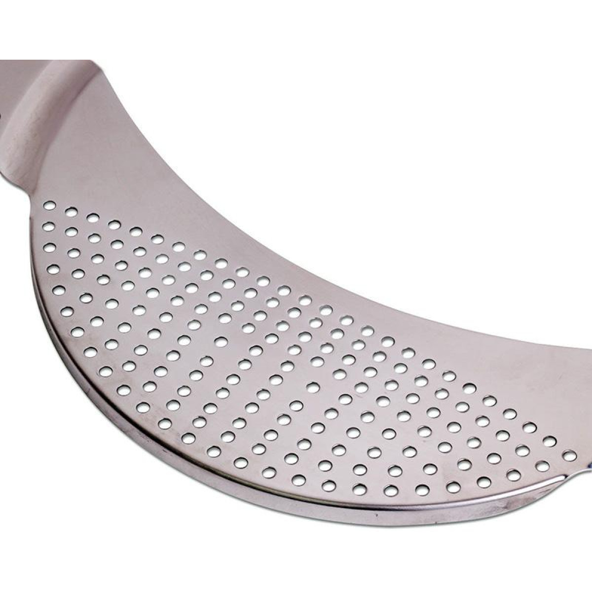 Дуршлаг-насадка Kamille для кастрюли. Выполнен из нержавеющей стали. Не боится контакта с жидкостями, не окисляется и не ржавеет. Насадка прикладывается к верхнему краю кастрюли, плотно прилегая к её стенкам. Размер 35.5х9см. Для процеживания макарон, спагетти, пельменей или вареников сцеживания компота или лимонада.