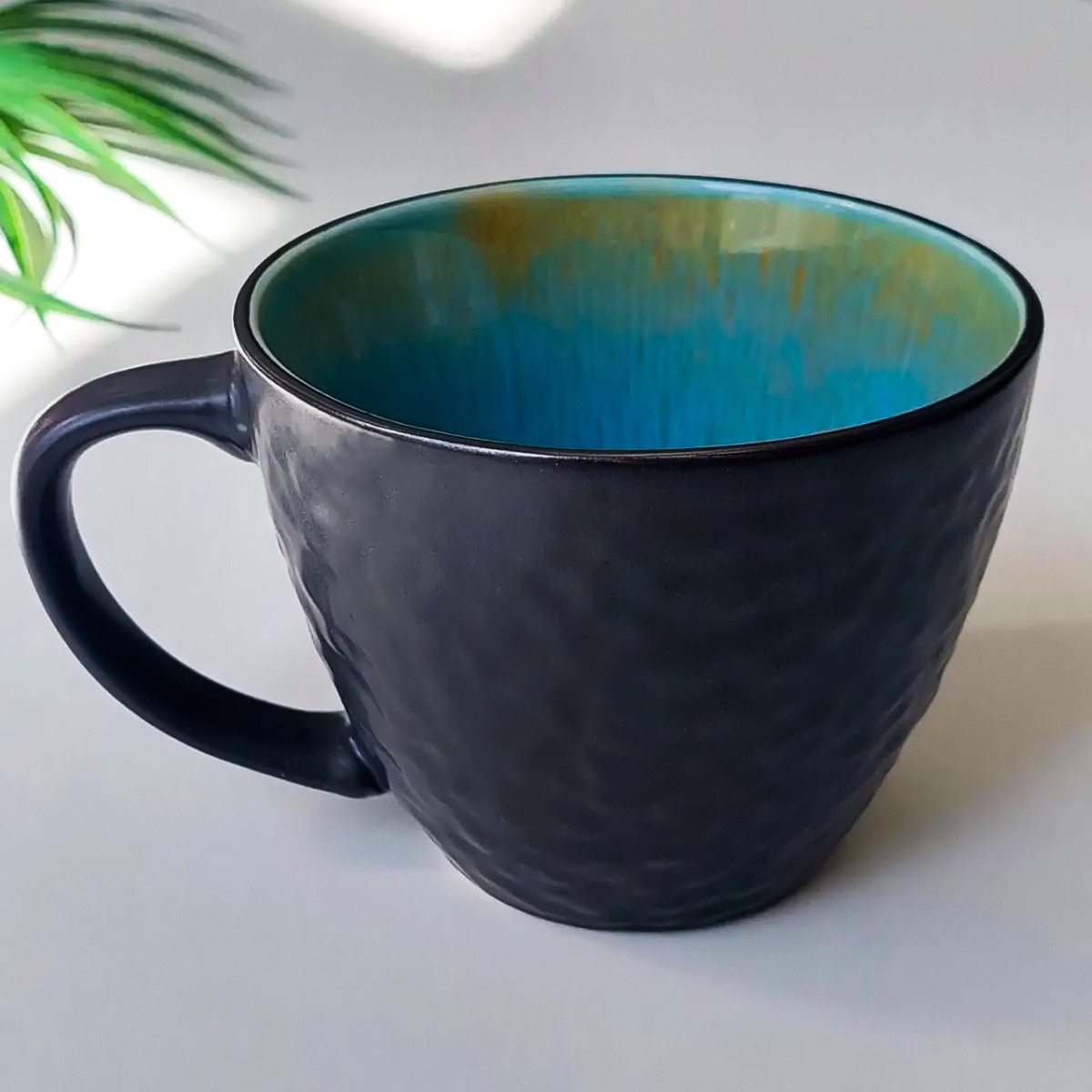 Изготовленная из высококачественной керамики, эта кружка обладает прочностью и элегантным дизайном. Голубо-черная комбинация цветов добавляет особый шарм и придает ей трендовый вид.