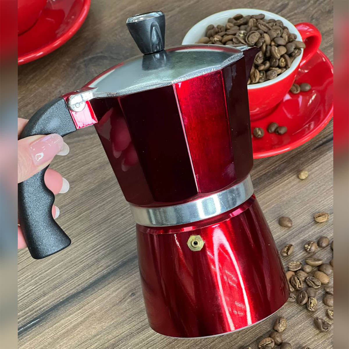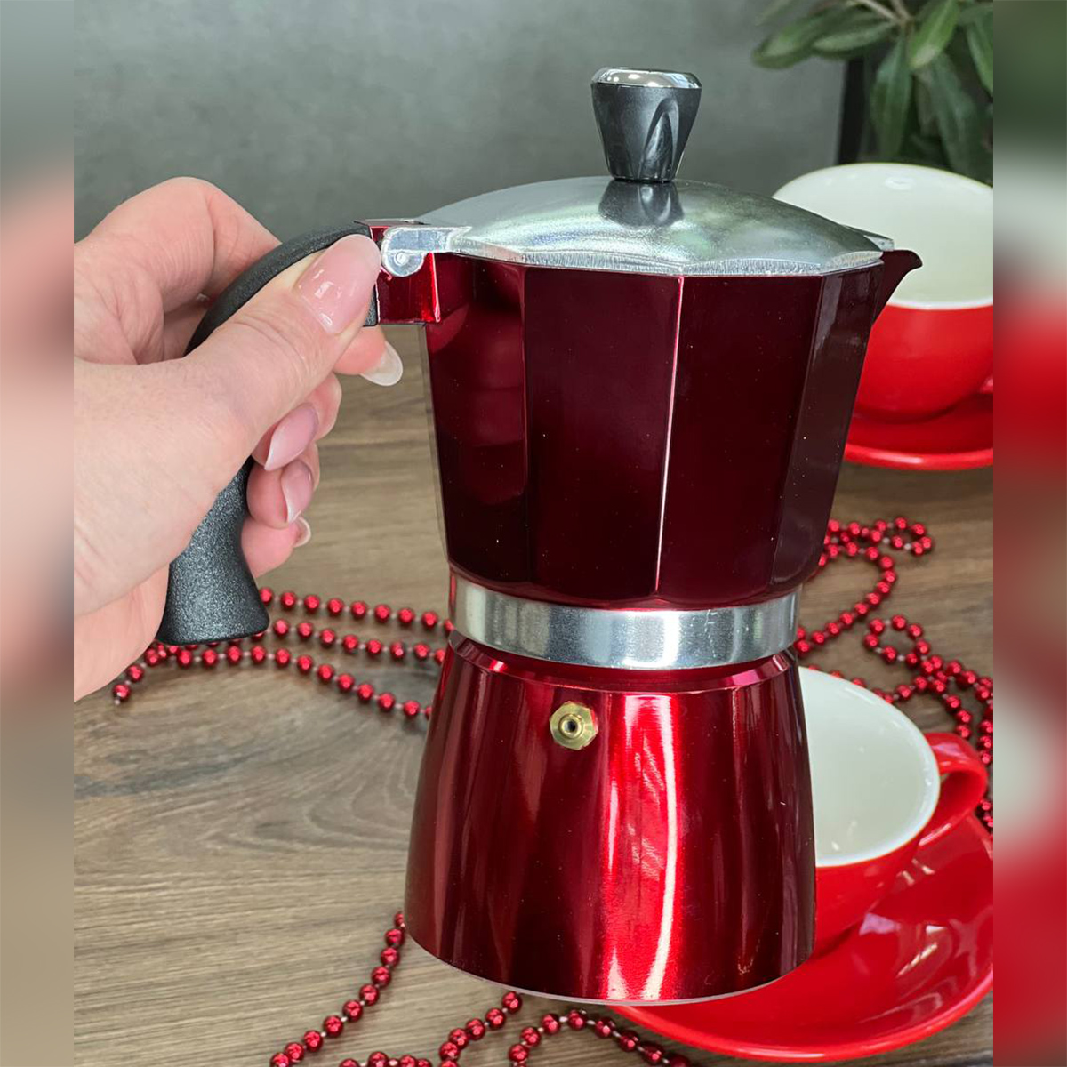 Гейзерна кавоварка Como 300 мл (6 чашок), алюмінієва, червона