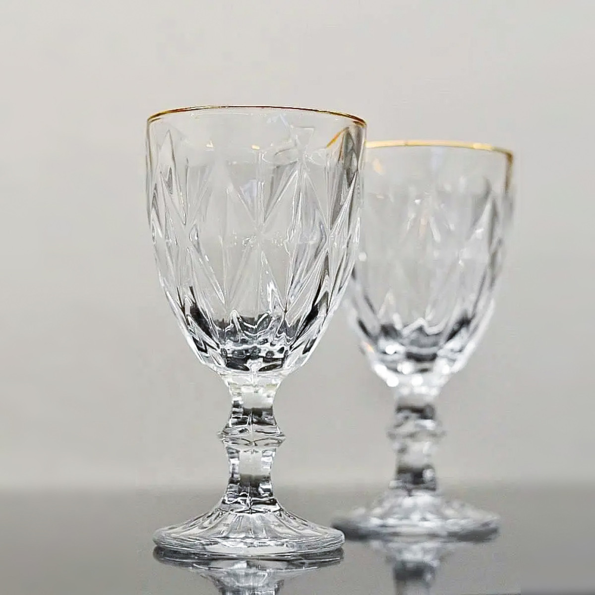 Келихи для червоного вина 325 мл із золотим обідком 6 шт Golden Emerald, товсте скло з гланями