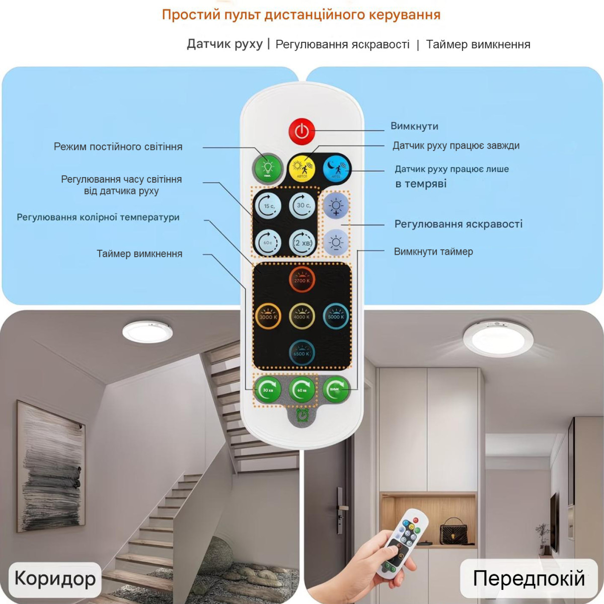 Бездротовий світильник з датчиком руху і пультом