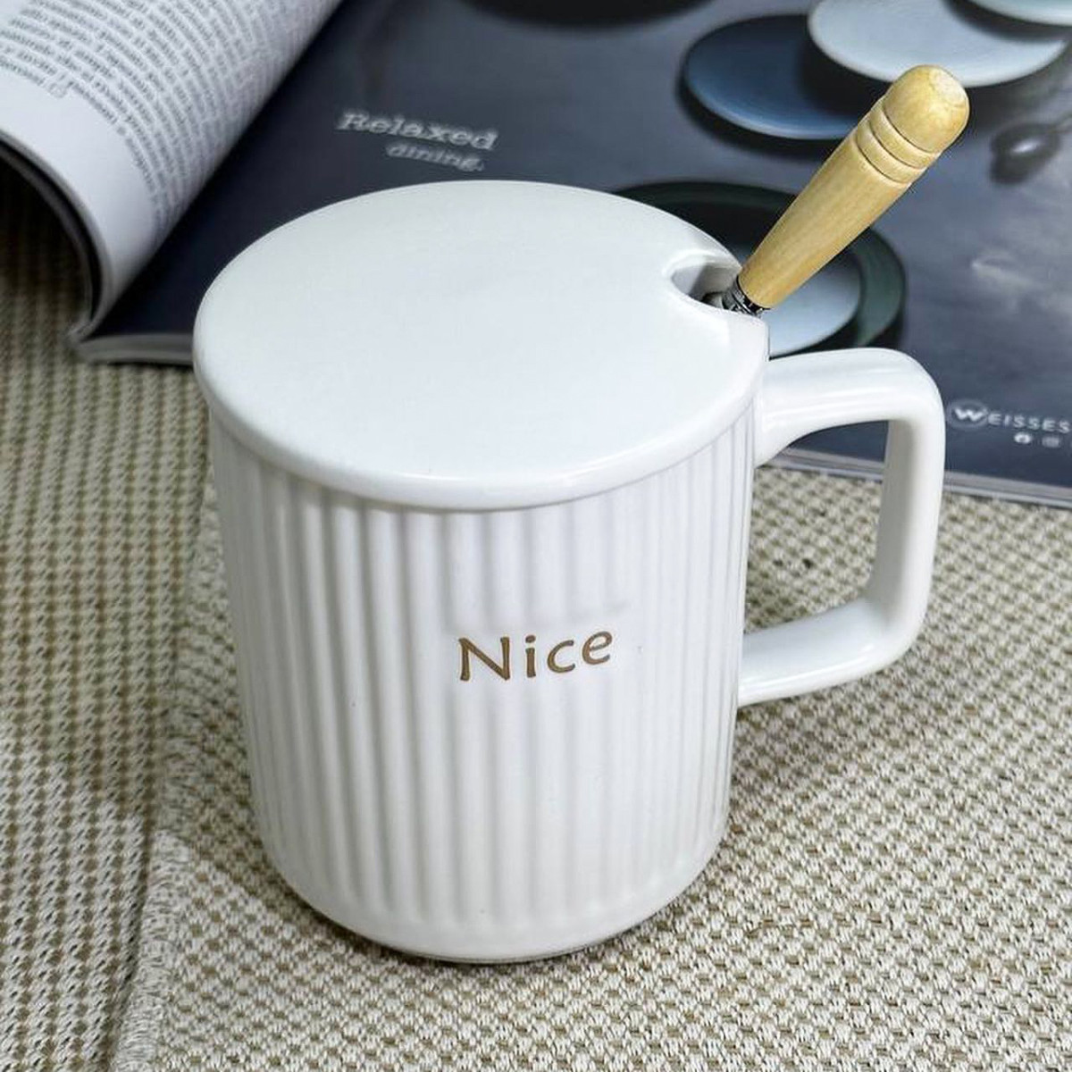 Кружка белая керамическая Refined taste 350мл с крышкой и ложкой