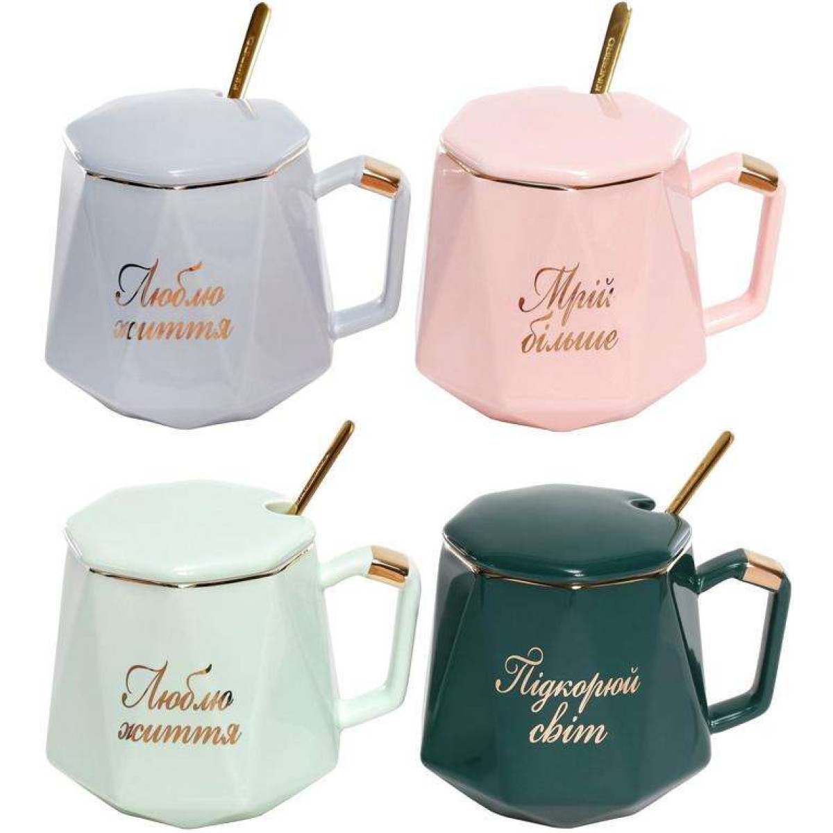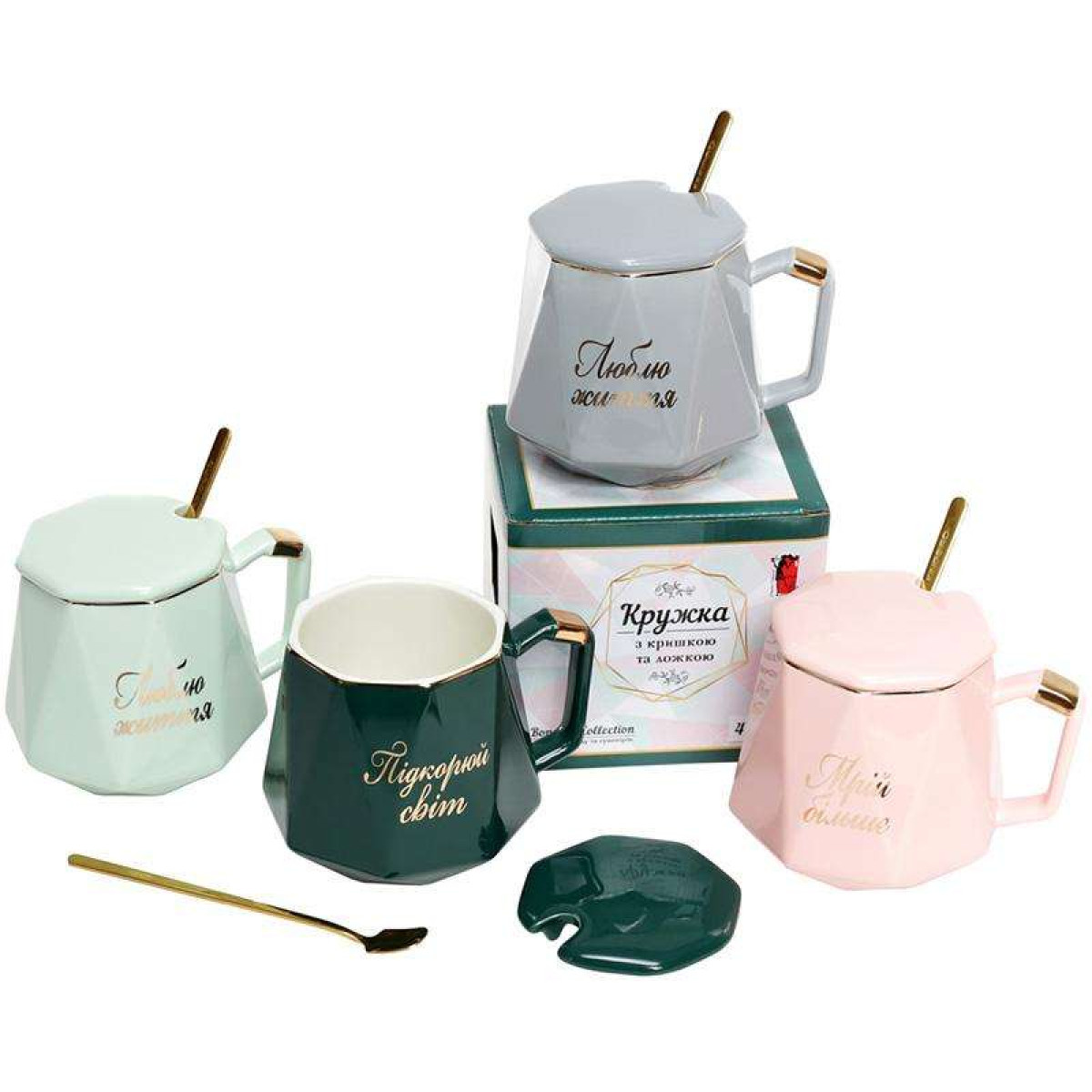 Кружка фарфорова Люблю Життя 420мл з кришкою і ложкою