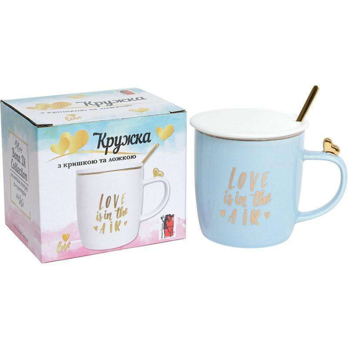 Кружка порцелянова Love is in the air 375мл з кришкою і ложечкою