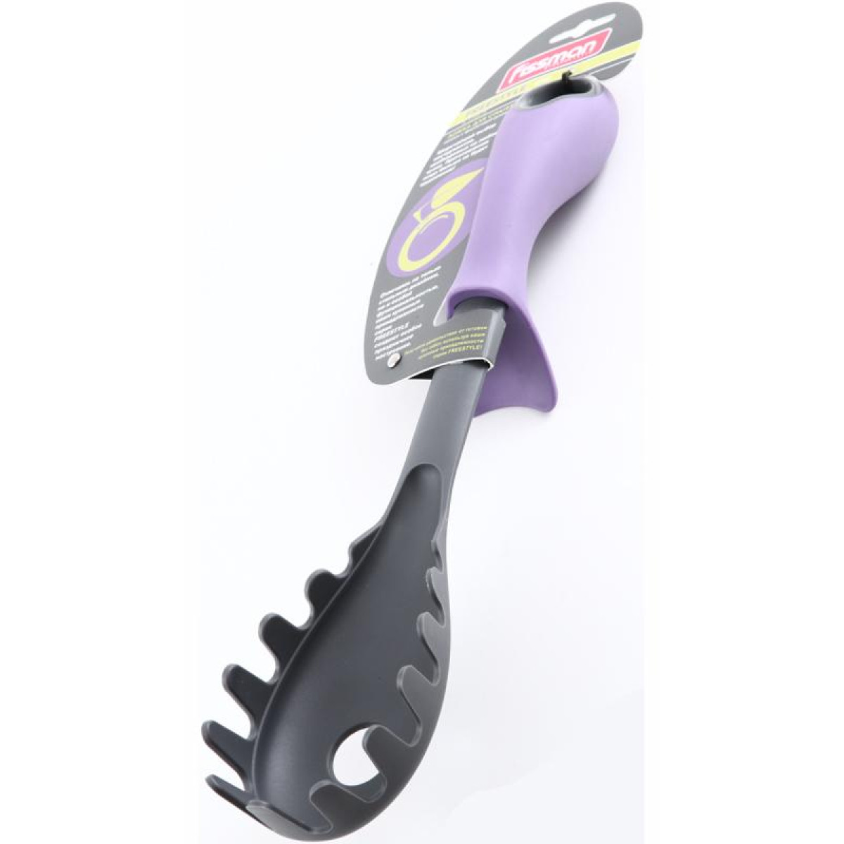Ложка для спагеті Fissman Freestyle виготовлена нейлонова. Підходить для роботи з посудом будь-якого типу, і особливо зручна в роботі з посудом з антипригарним покриттям, де важливо використовувати щадні аксесуари. Нейлон витримує температури до +210 градС, не змінюючи своїх якостей від контакту з гарячою поверхнею. Зручна ергономічна силіконова ручка, з нижнім міні-екраном для захисту рук. Розмір: 32х5,5см. Колір робочої частини: графітово-сірий, ручка - бузкова. Безпечно витягти з окропу макаронні вироби - без проблем.