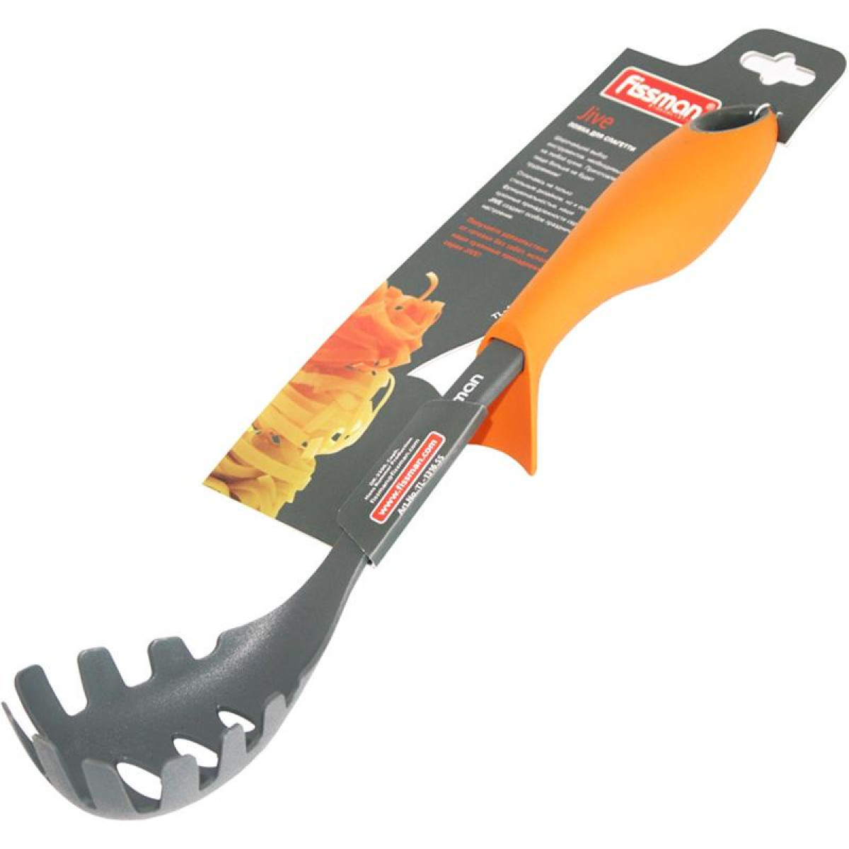 Ложка для Спагеті Fissman Jive виконана з нейлону - для посуду з антипригарним покриттям. Нейлон безпечно контактує з посудом, не пошкоджуючи зовнішнє покриття і не порушуючи антипригарних властивостей кухонного посуду. Бакелітова ручка зі зручним вигином під форму долоні. Колір ручки - помаранчевий. Загальна довжина 32см. Можна мити в посудомийній машині.