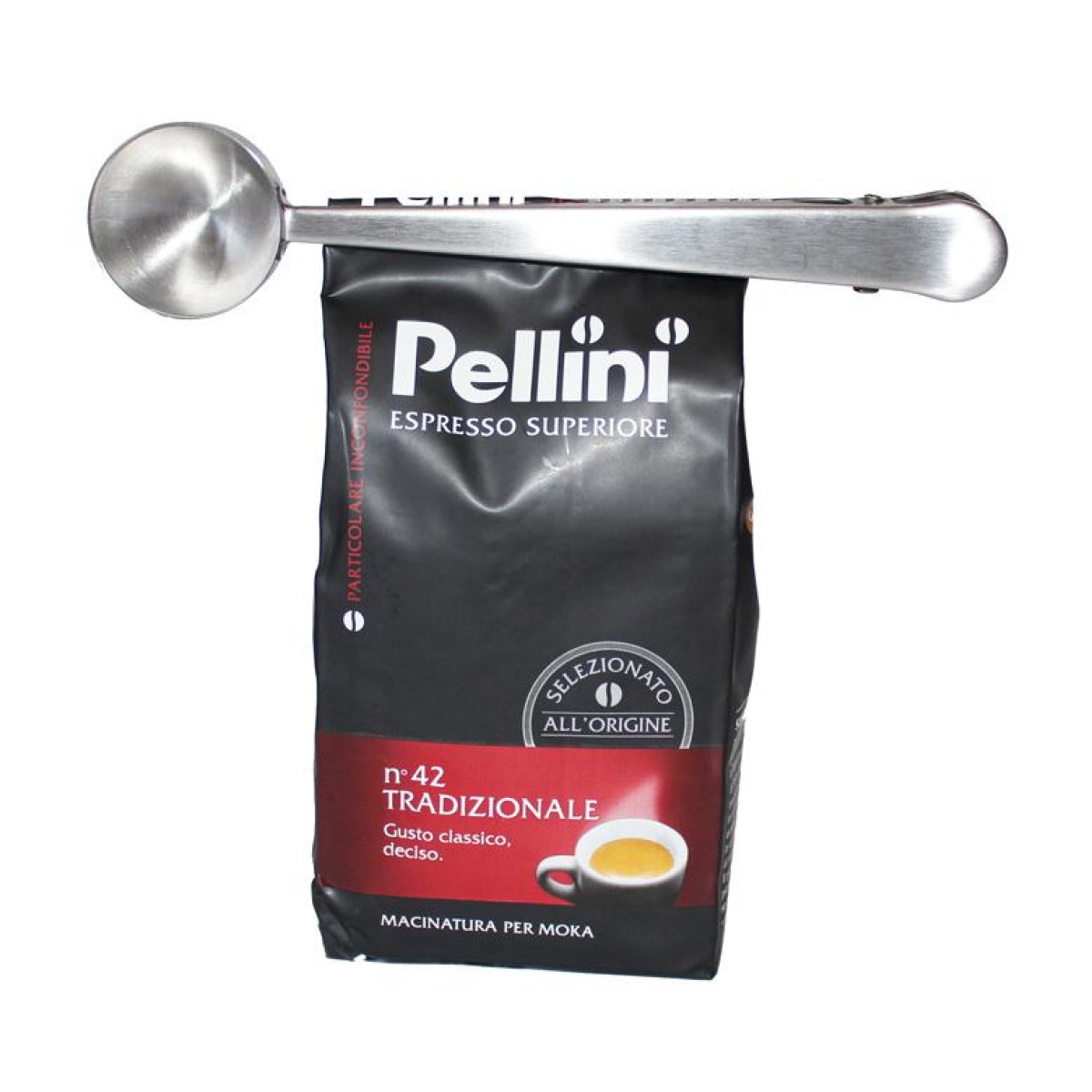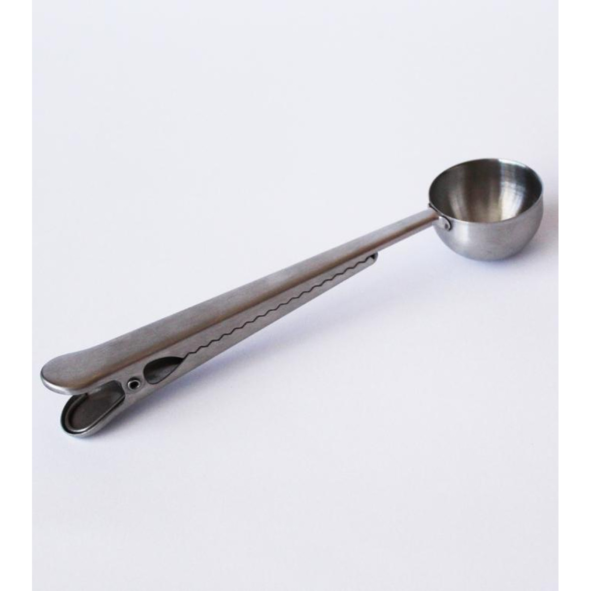 Ложка мерная 20мл для кофе, чая, специй. Зажим для пакета. Ложка изготовлена из нержавеющей стали с матовой полировкой. 17,5см. В блистерной упаковке.