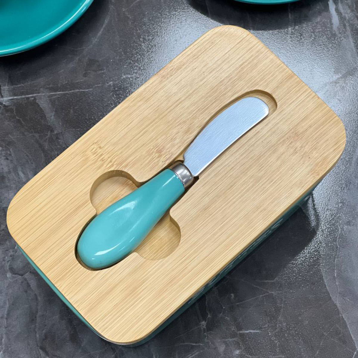 Масляна керамічна "Butter" з бамбуковою кришкою та ножем, бірюзова.