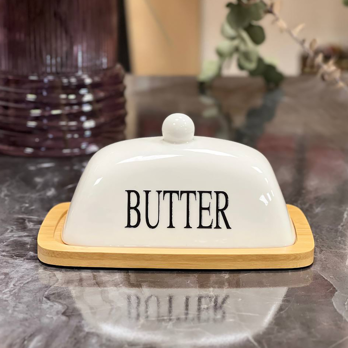 Бамбукова підставка є екологічною та міцною, а керамічна кришка надійно захищає масло від сторонніх запахів і висихання, зберігаючи його свіжість. Завдяки лаконічному вигляду маслянка виглядає акуратно та естетично на столі під час сніданку чи сервірування.