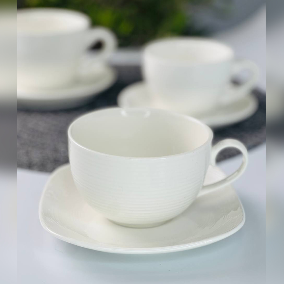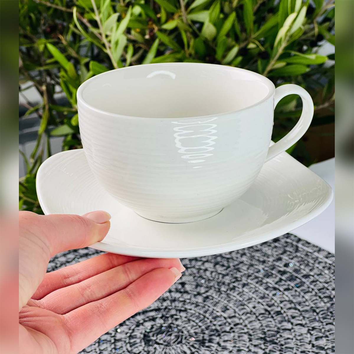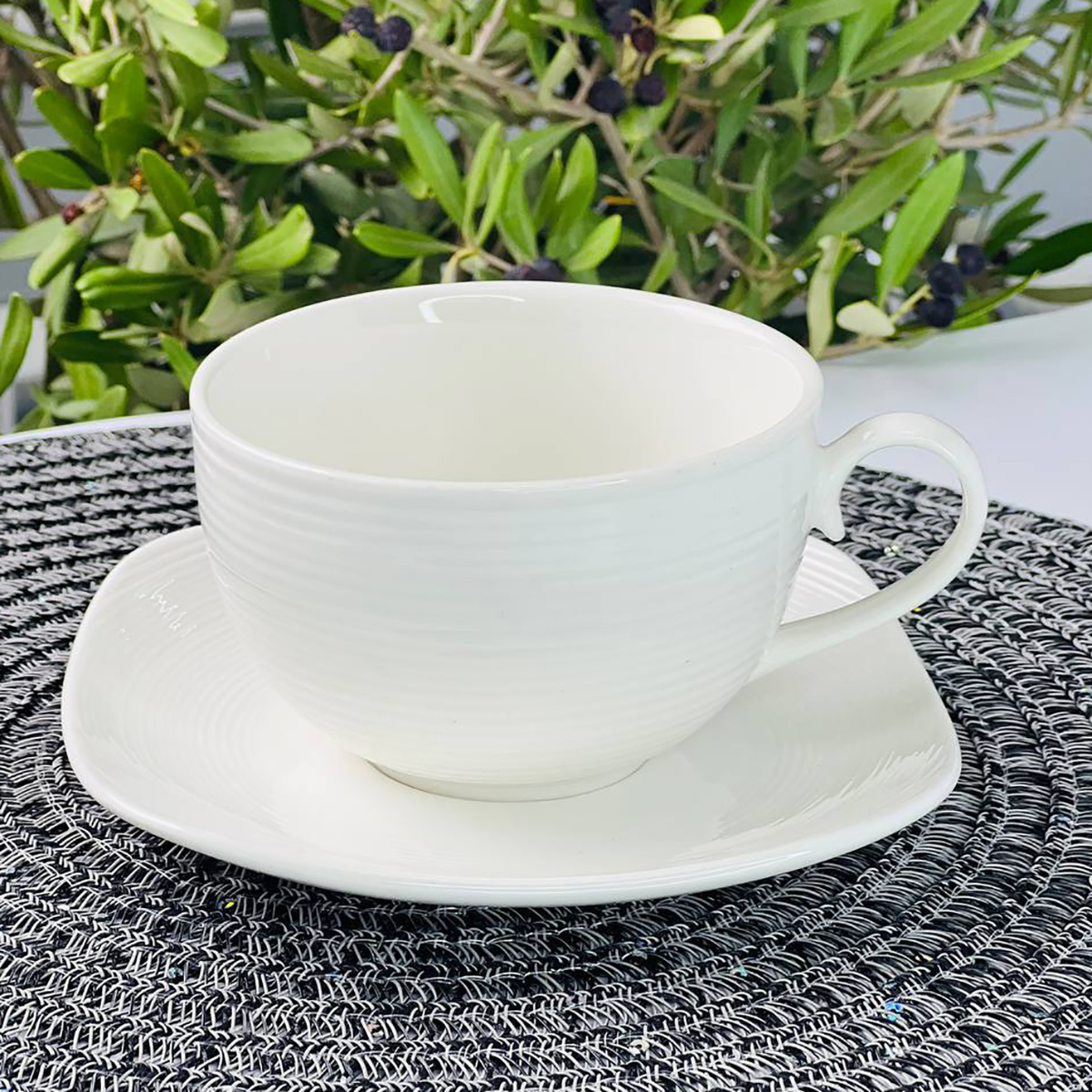 Чашка з квадратним блюдцем Summer 350 мл, кераміка, біла