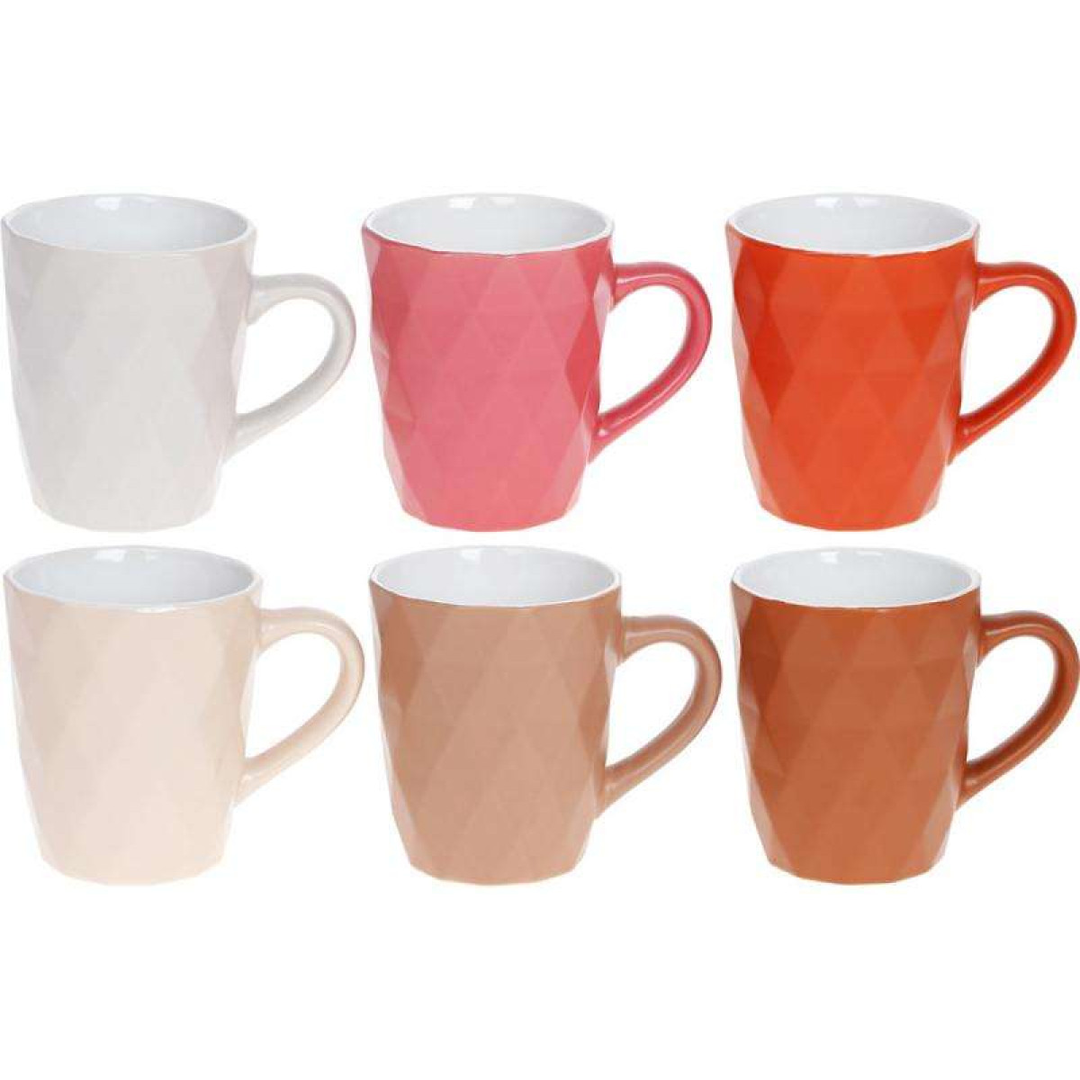 Набор из 6 керамических чашек Амстердам. Объем, мл: 340 мл. Размер: 8.4х10.2см. Наслаждайтесь нежностью и спокойствием во время чаепития. В наборе цветные кружки – оранжевая, кофейная, белая, розовая, молочная и коричневая. Рельефные стенки с вафельным узором. Можно мыть в посудомоечной машине.