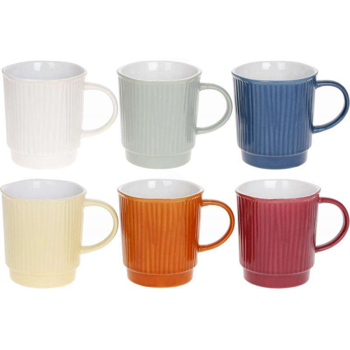 Набор из 6 керамических чашек Палаццо. Объем, мл: 390 мл. Размер: 9.5х10.2см. Яркий цвет кружки сделает Ваше чаепитие красочным и неповторимым. В наборе цветные кружки – синяя, желтая, белая, оранжевая, серая и красная. Рельефные стенки с гофрированным рисунком. Можно мыть в посудомоечной машине.