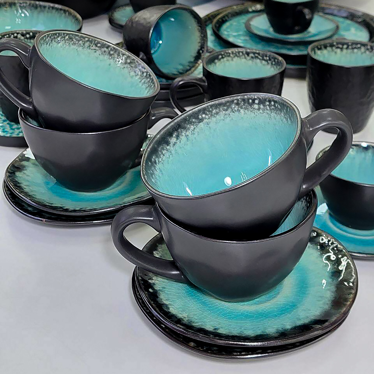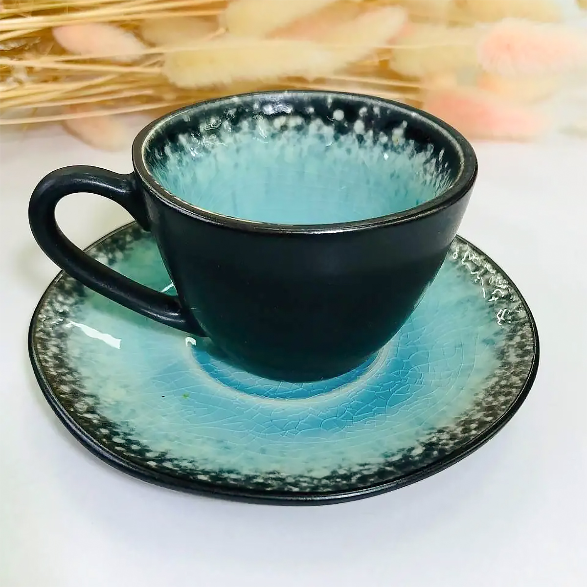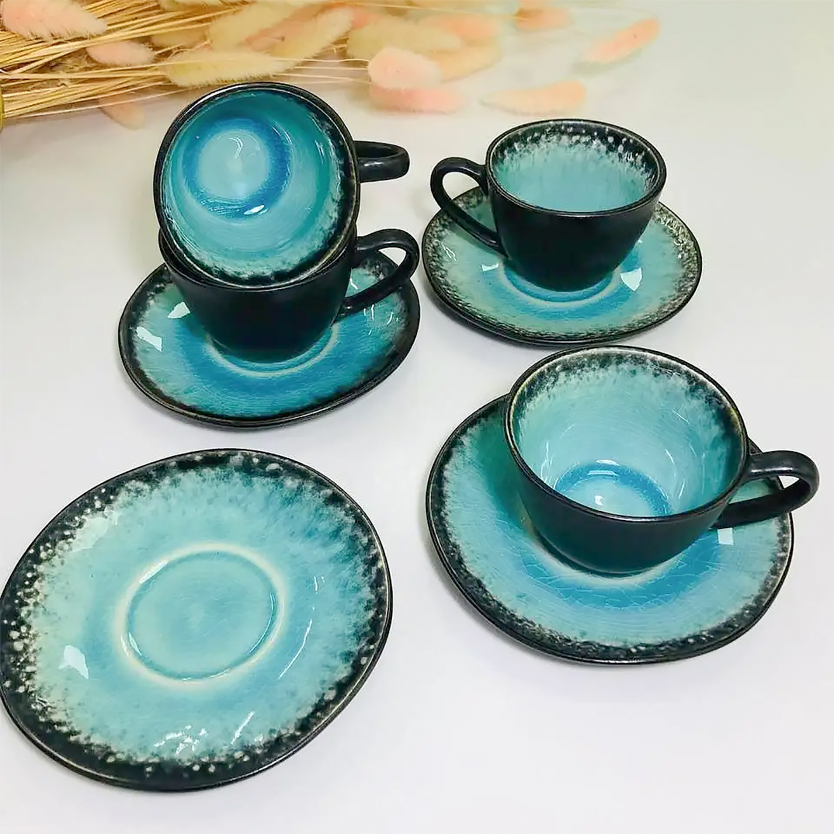 Кавовий сервіз (набір) 4 чашки 100 мл із блюдцями для еспресо Blue Lake, із кераміки чорний зовні