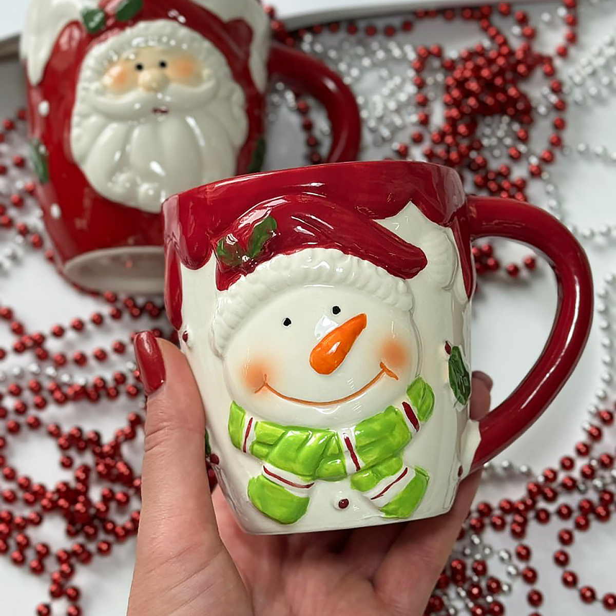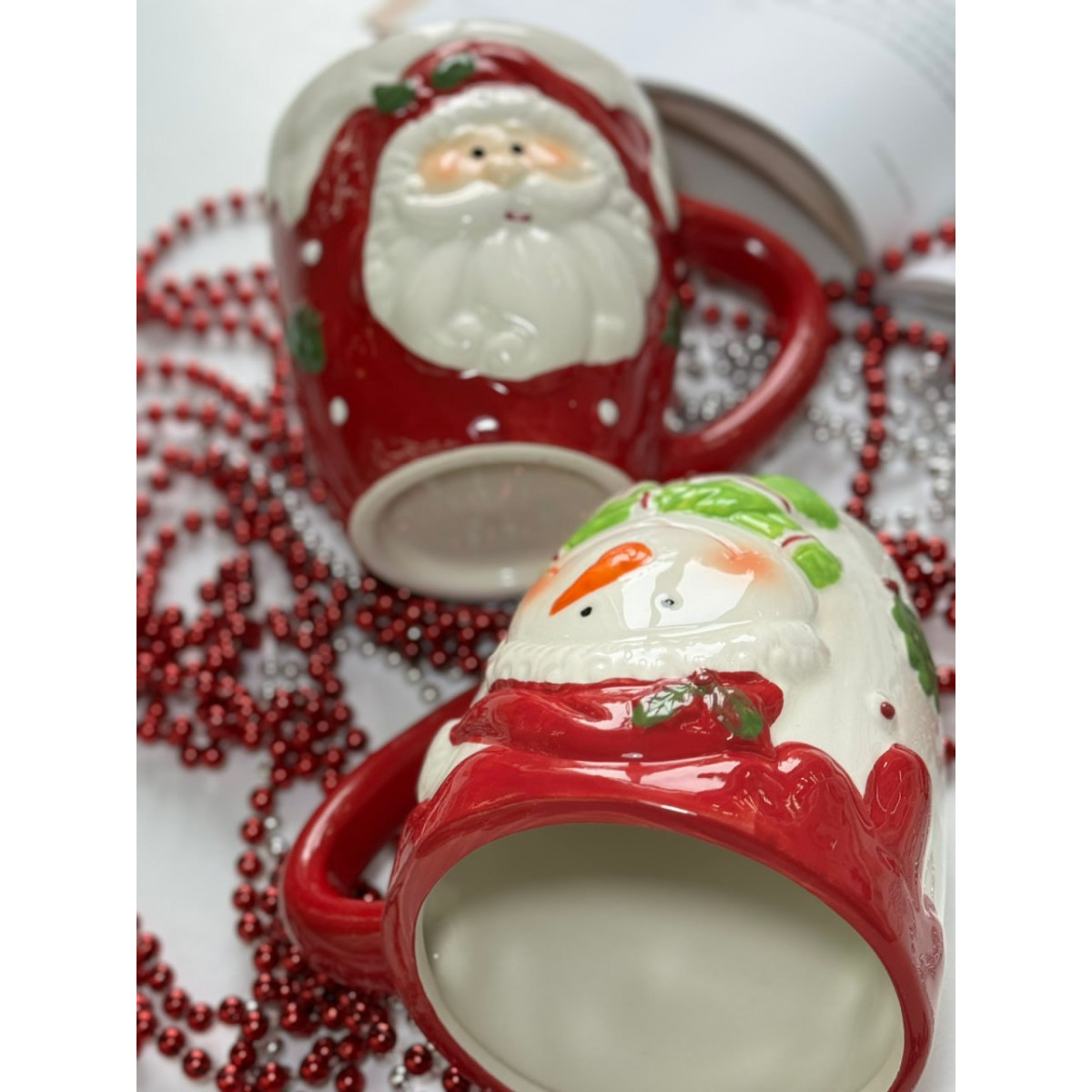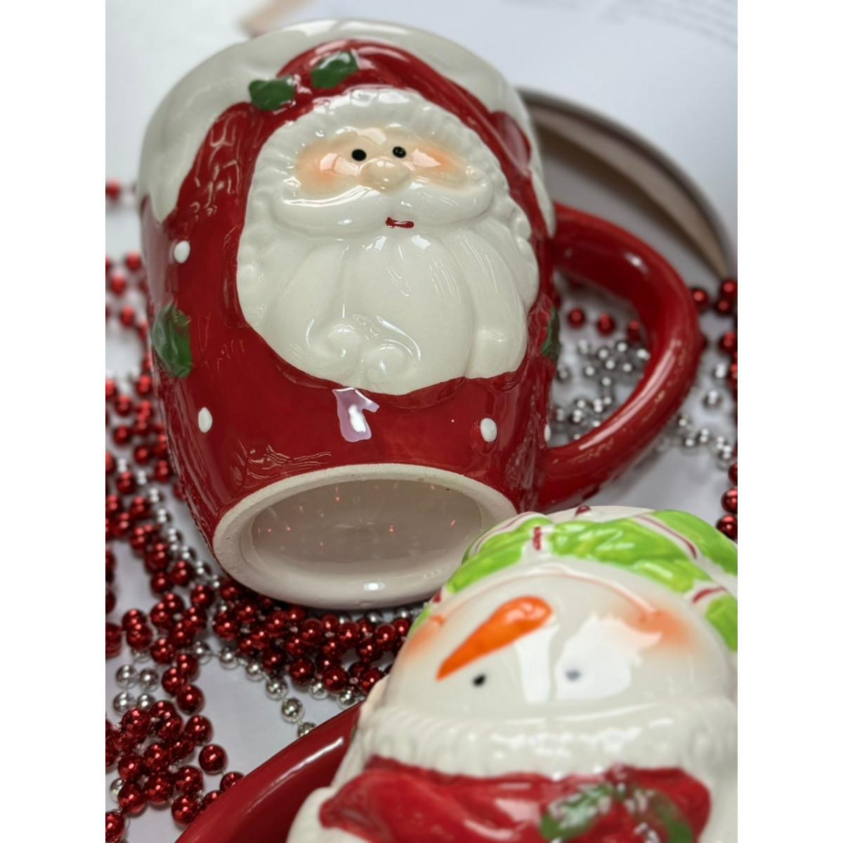 Новогодняя (рождественская) керамическая кружка Снеговик. Яркая глянцевая керамика с объемным декором. Полный объем 400мл.
