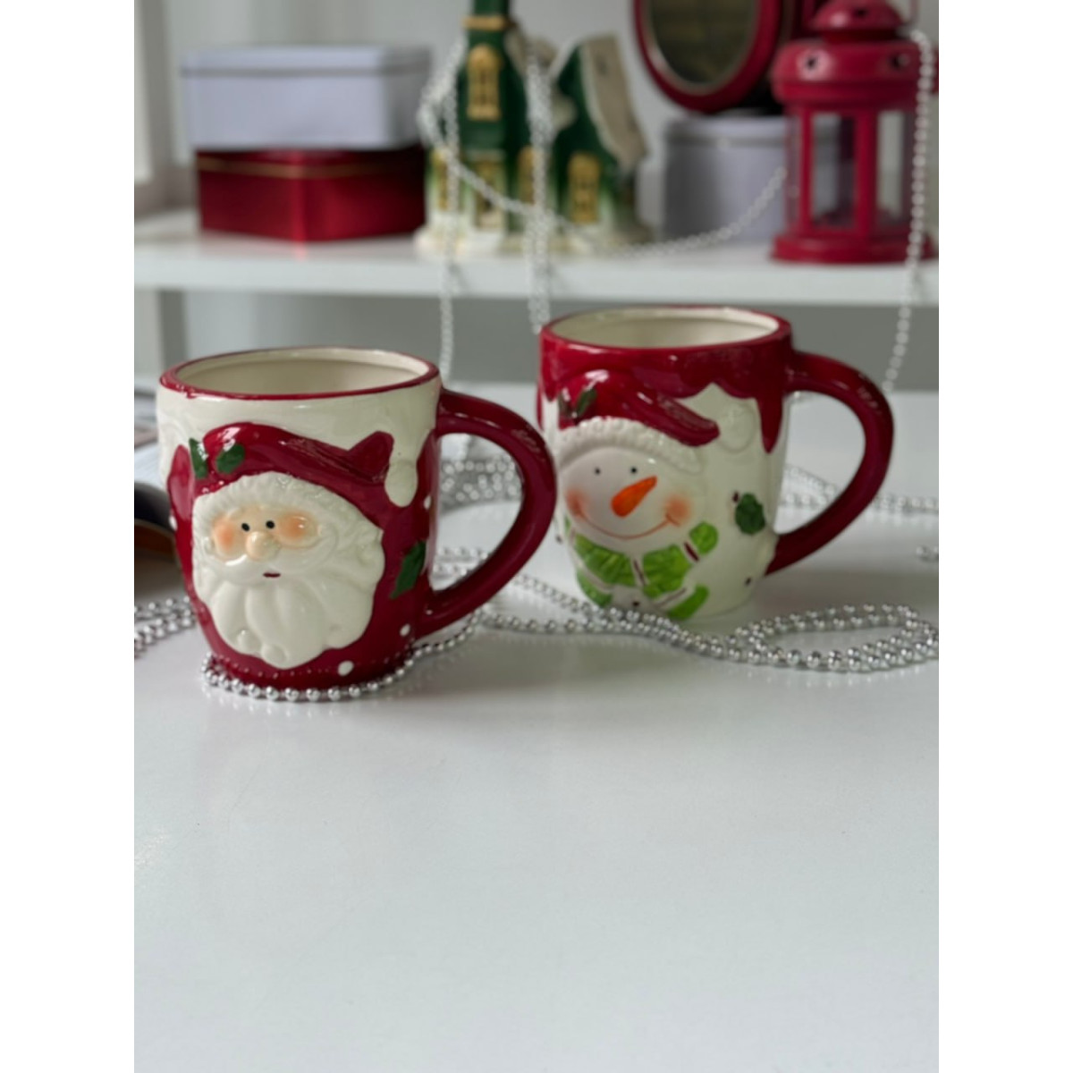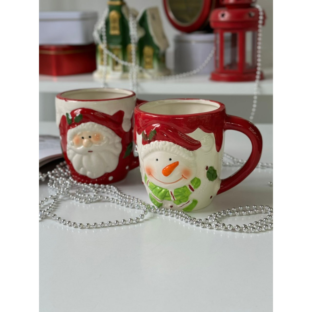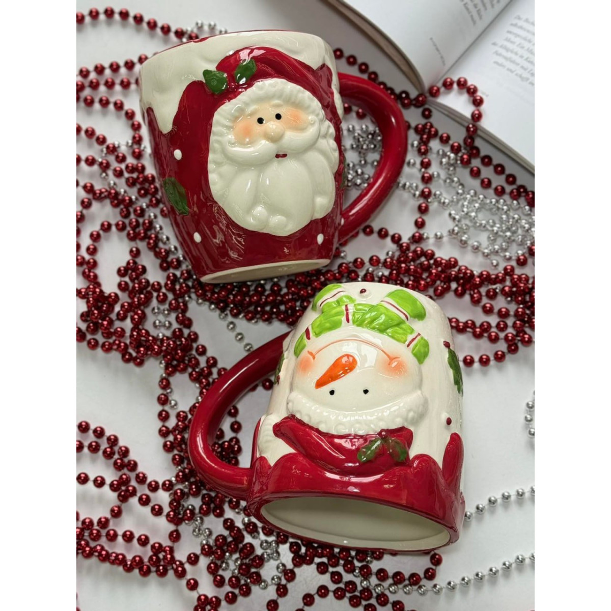 Новогодняя (рождественская) керамическая кружка Снеговик. Яркая глянцевая керамика с объемным декором. Полный объем 400мл.