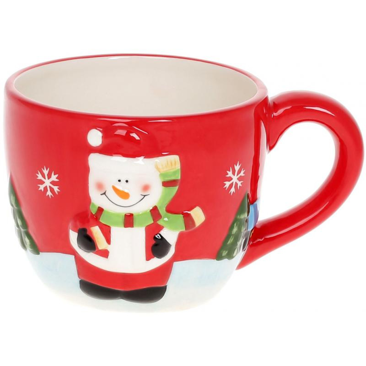 Новогодняя (рождественская) керамическая кружка Снеговик. Яркая глянцевая керамика с объемным декором. Полный объем 550мл. Размер: 15.5х11.5см, высота 9см.
