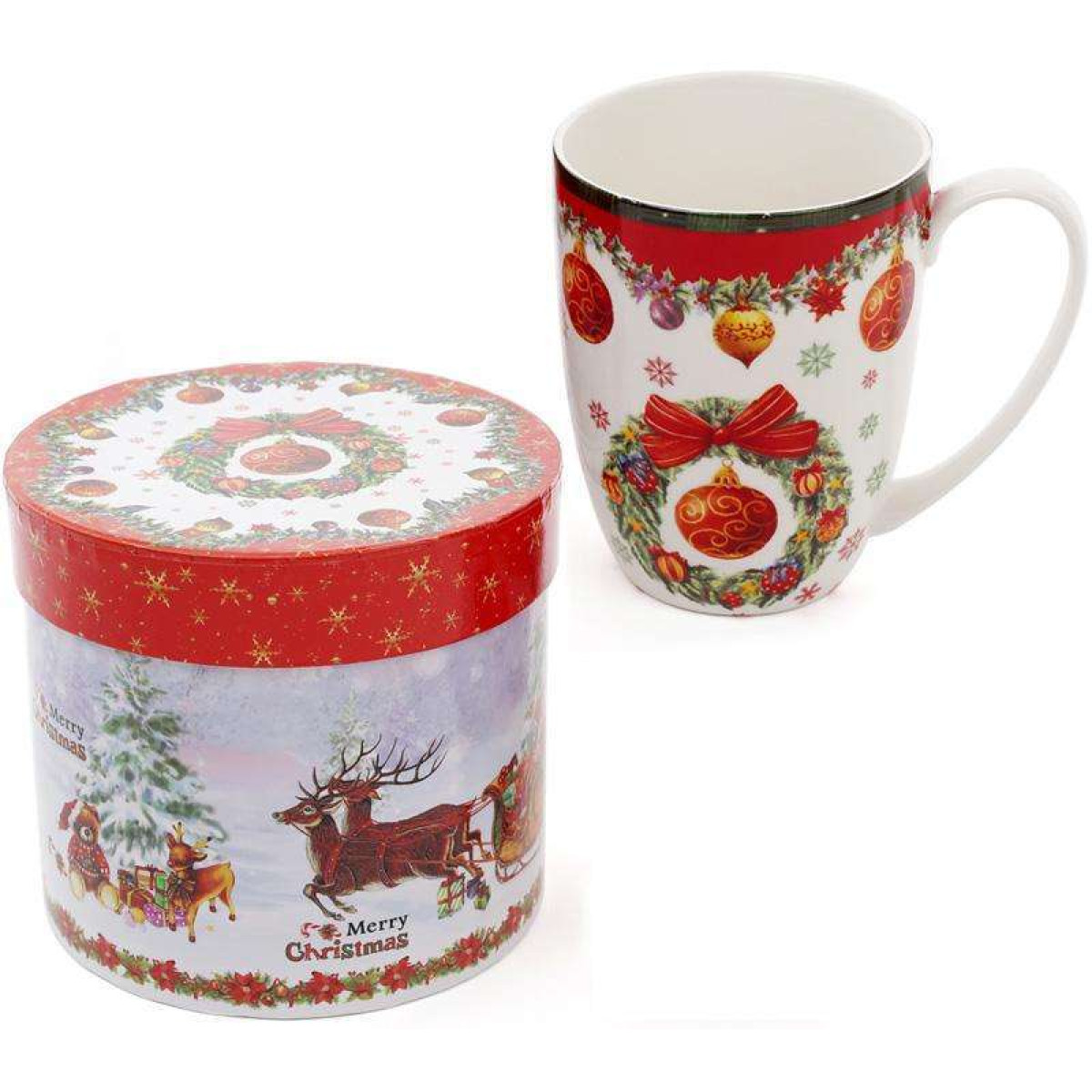 Кружка порцелянова Різдвяний орнамент 375мл в подарунковому тубусі