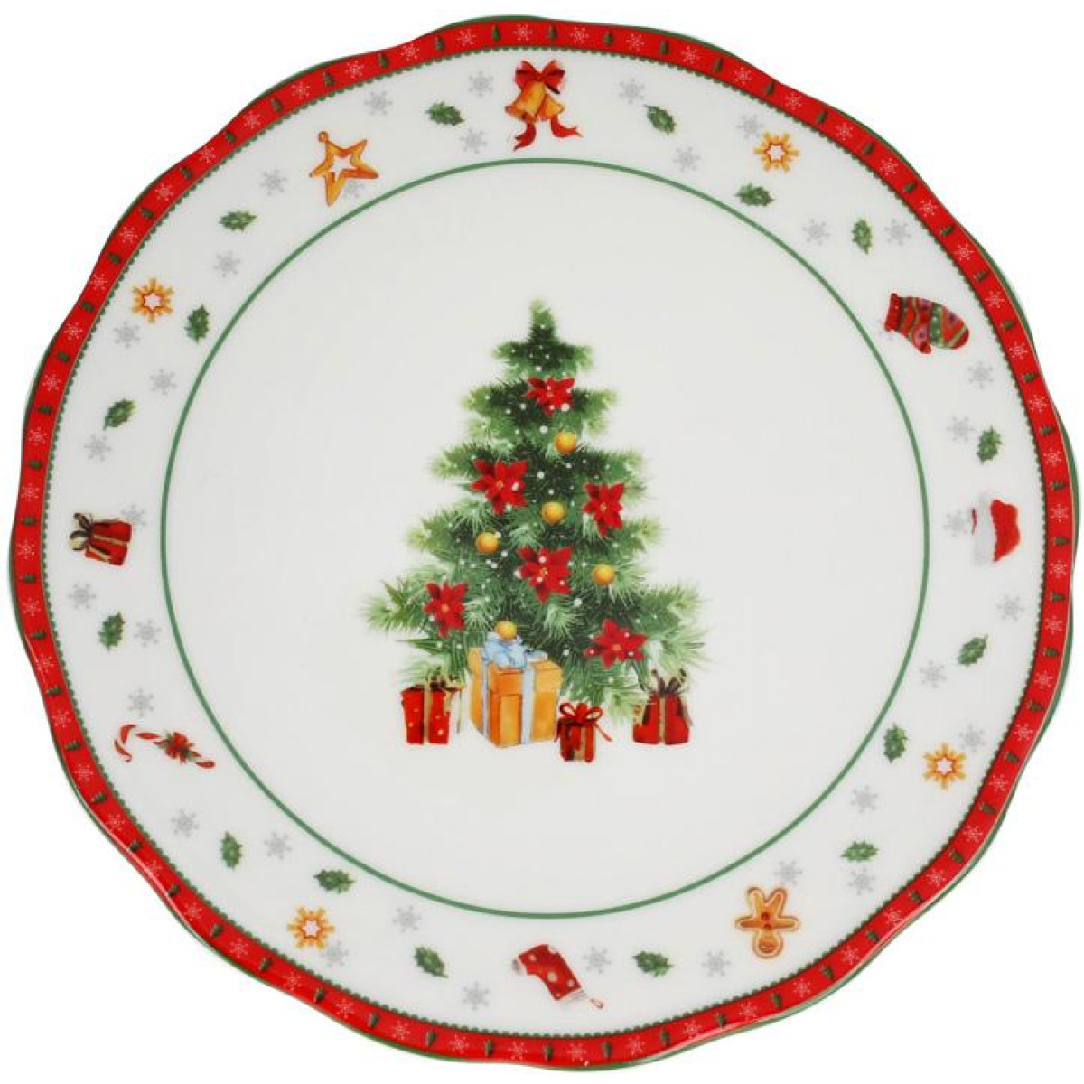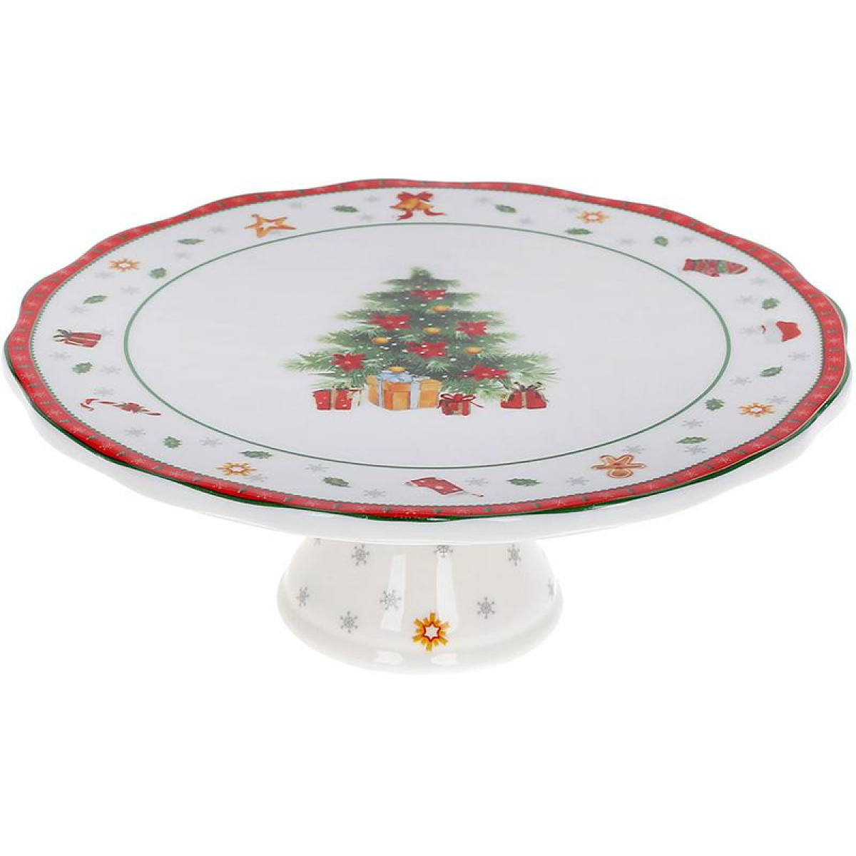 Підставка для торта (блюдо на нозі) Ялинка - яскравий посуд для затишного і веселого різдвяного столу. Діаметр 20.5см. Блюдо виготовлено з білого фарфору з малюнком ялинки в центрі. Різдвяне блюдо упаковано в кольорову подарункову коробку і послужить відмінним подарунком до Різдвяних свят або до Нового Року. Найкраща ідея оригінального позитивного і практичного подарунка в період зимової казки.