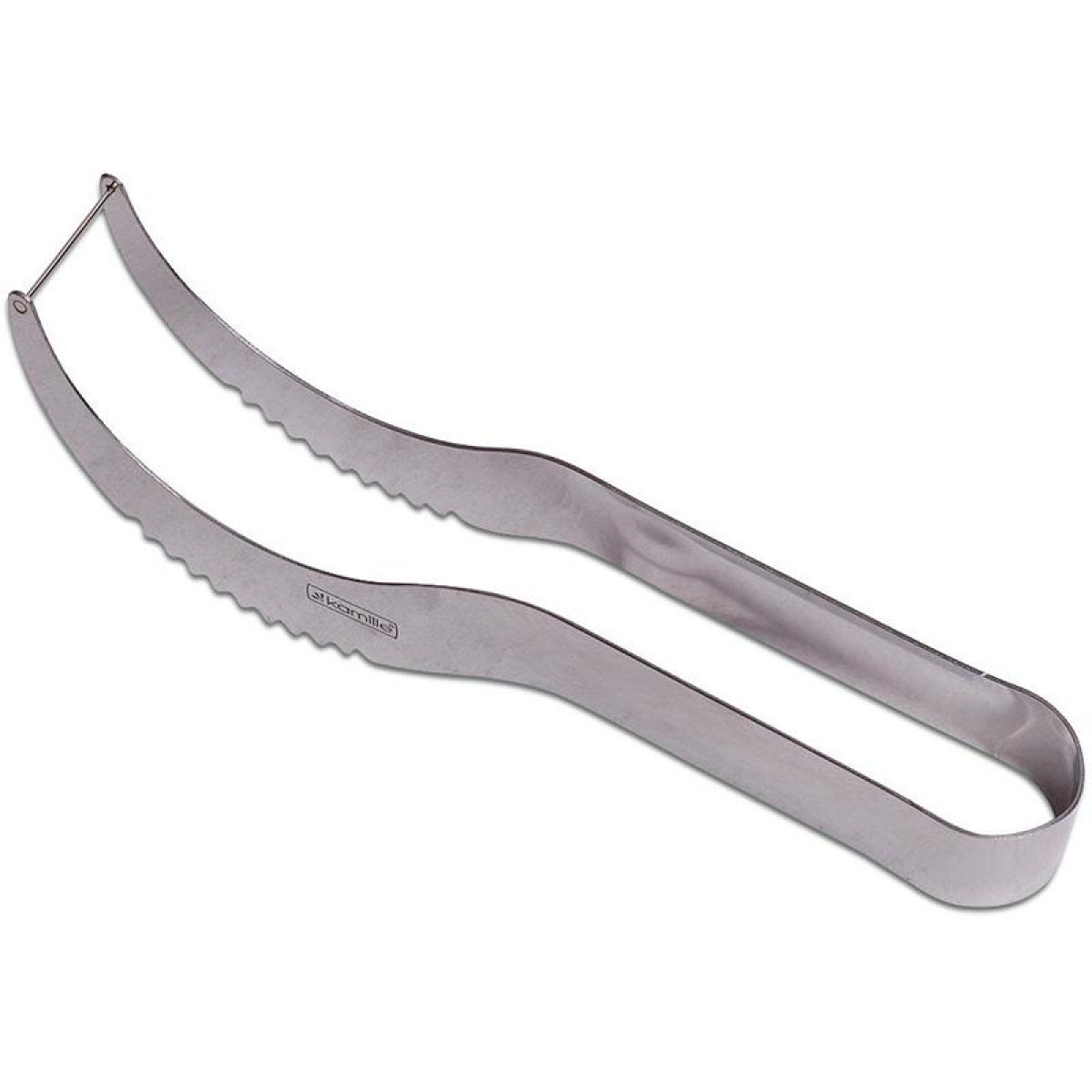 Нож для арбуза Kamille Watermelon (арбузорезка) из нержавеющей стали. Размер: 21.3х3.4х5.9см. Лезвие усилено мелкими зубцами. Незаменимый аксессуар в пору популярности летнего сочного фрукта.