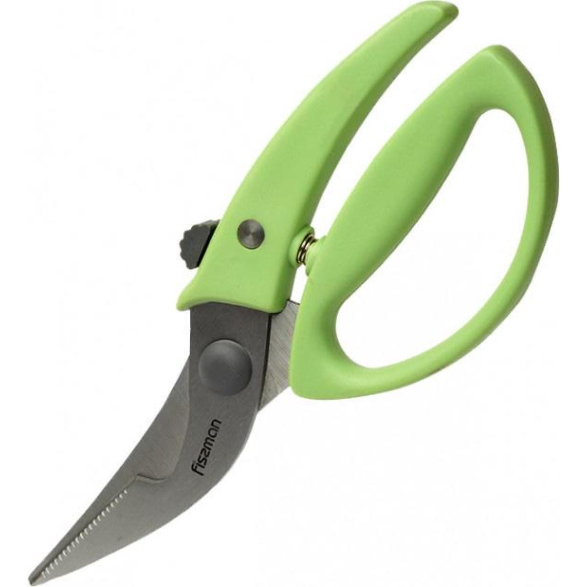 Ножиці Fissman, довжина 23см. Універсальні кухонні ножиці, за допомогою яких можна: обробляти різні продукти, чистити рибу, нарізати зелень для салату, а також знімати панцири з креветок і багато іншого. Леза виготовлені з високоякісної нержавіючої сталі і загартовані, що дозволяє їм тривалий час залишатися гострими і витримувати значні навантаження. Завдяки ергономічним бакелітовим ручкам, ножицями легко орудувати. Колір ручок - зелений.