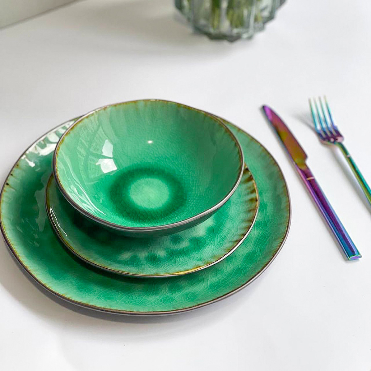 Тарілка обідня кругла 27 см плоска зелена Green Lagoon