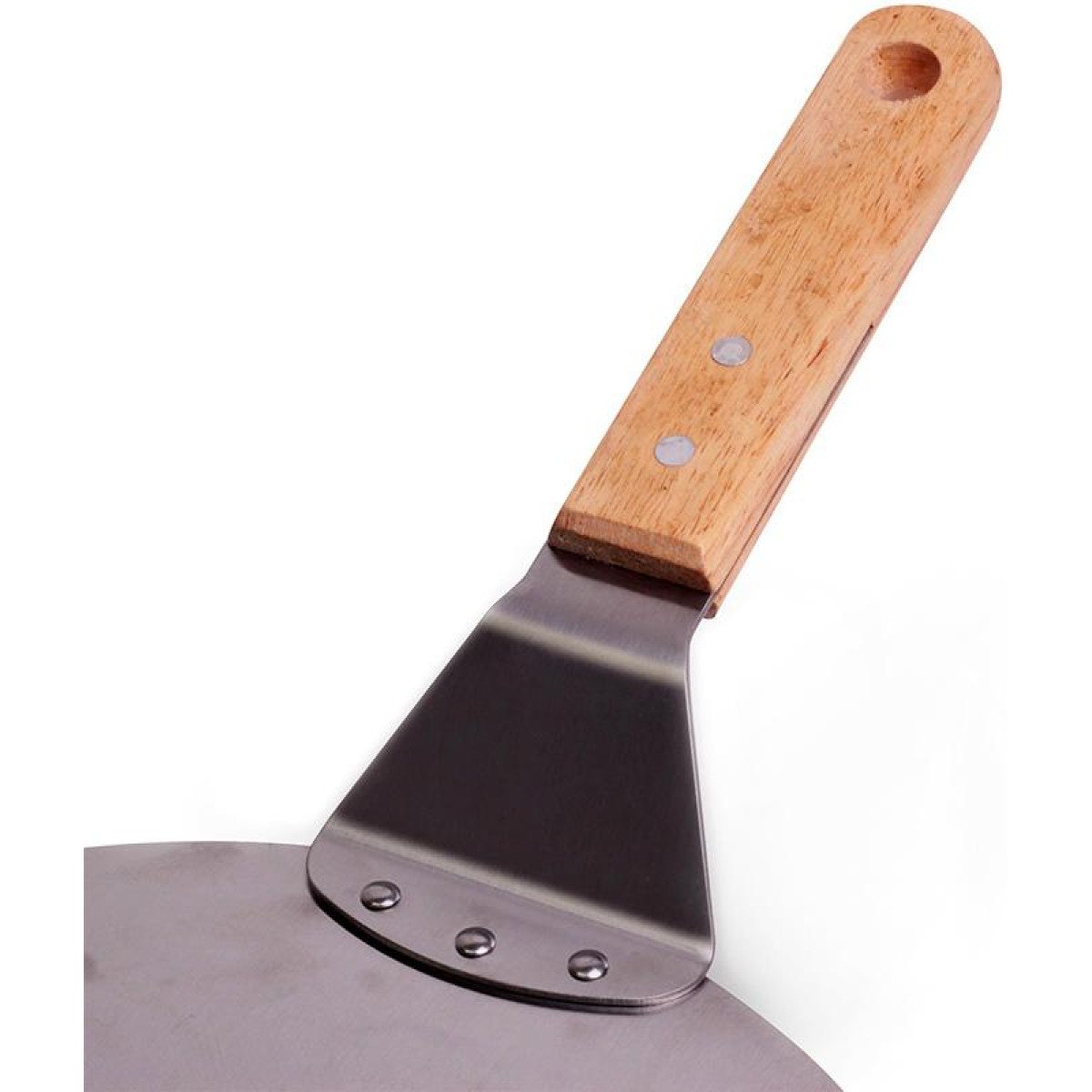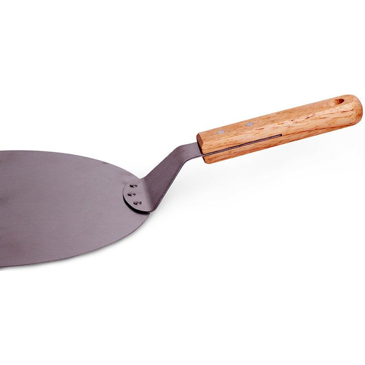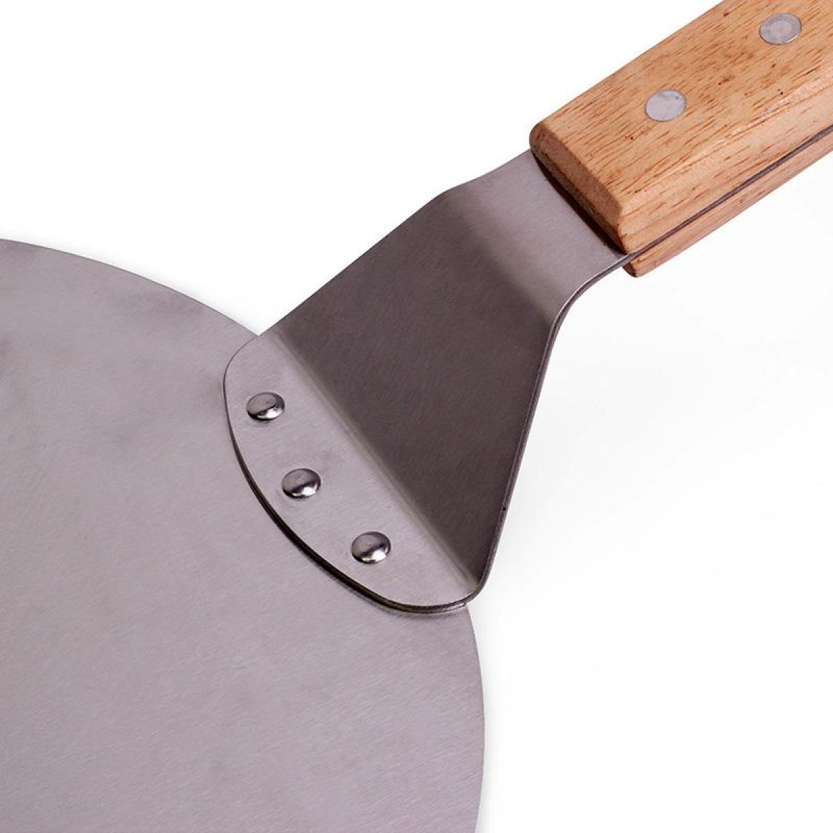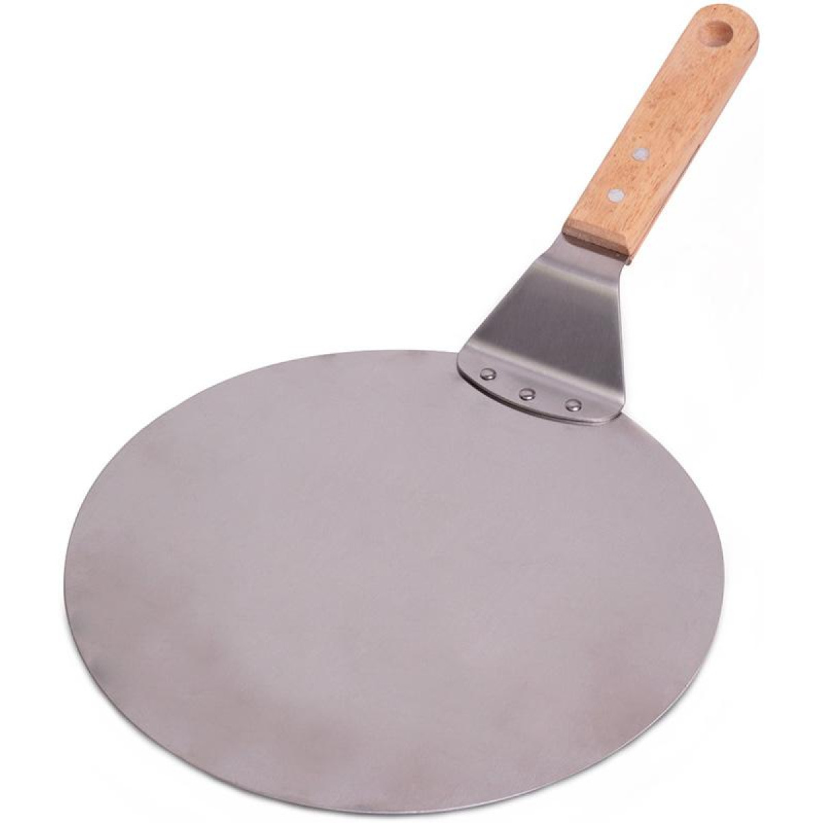 Підставка для піци Kamille з нержавіючої сталі. Діаметр 25.5см, ширина з ручкою 43см. Зручна, практична і незамінна як на домашній, так і на професійній кухні. Нержавіюча сталь не піддається деформації і прослужить довгі роки, зберігши антикорозійні властивості. Світла дерев'яна ручка.