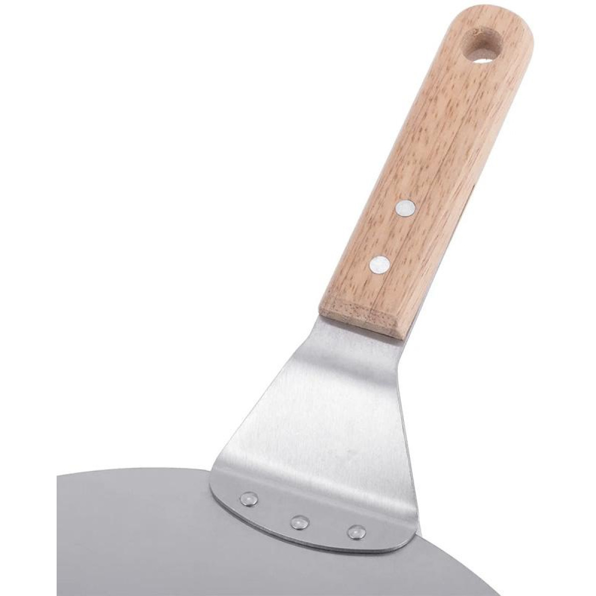 Подставка-лопатка для пиццы Kamille из нержавеющей стали. Диаметр 30.5см, ширина с ручкой 49см. Удобная, практичная и незаменимая как на домашней, так и на профессиональной кухне. Нержавеющая сталь не подвергается деформации и прослужит долгие годы, сохранив антикоррозионные свойства. Светлая деревянная ручка.
