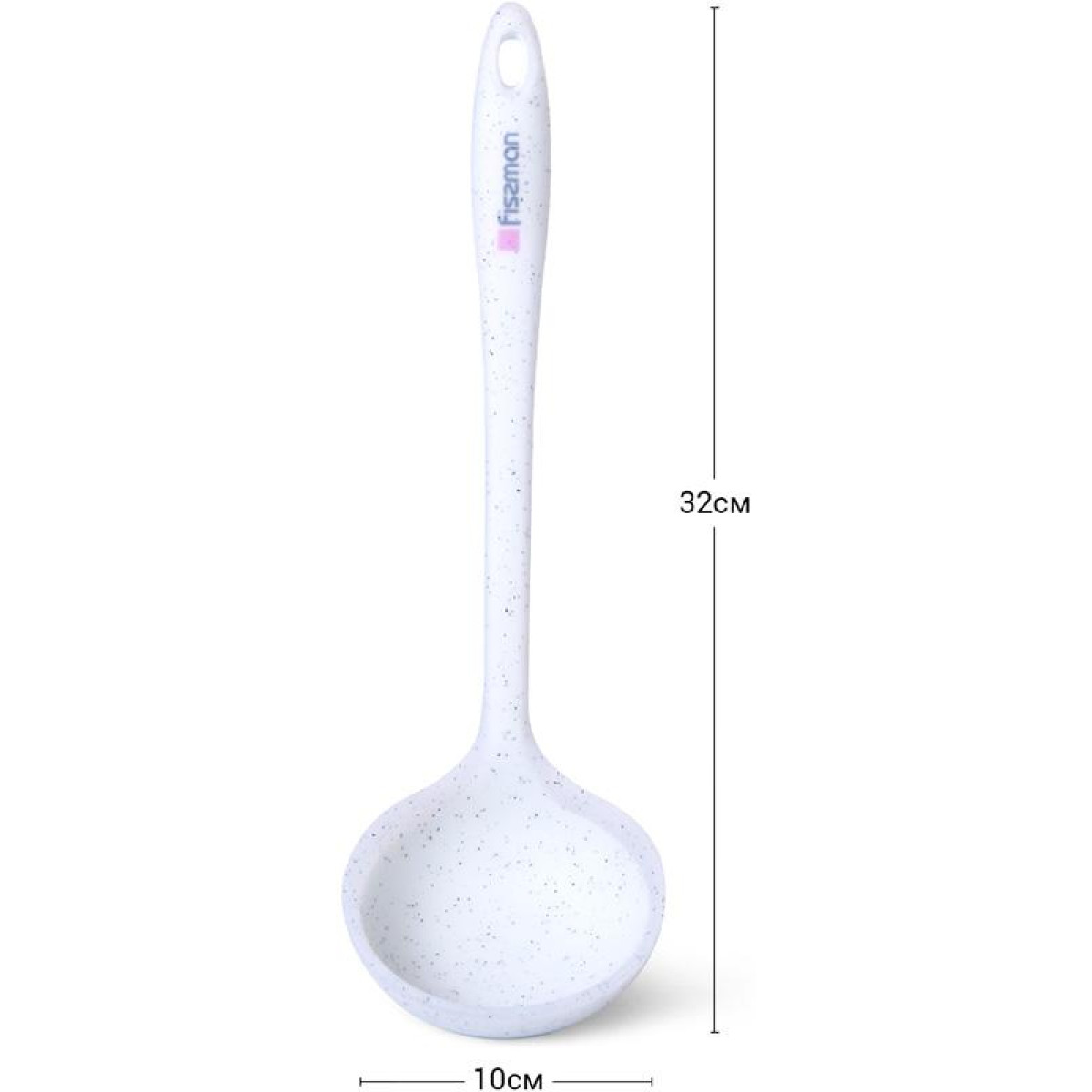 Половник Fissman Bianca предназначен для розлива горячих супов, соусов, также им удобно разливать кисель, морс, сок. Половник изготовлен из нейлона и силикона, не выделяет вредных веществ при нагревании, не впитывает запахи, практичен в использовании, пригоден для всех видов посуды, не повреждает и не царапает поверхность. Размер половника: 32х10х6.5см. Объем 130мл. Половник Fissman Bianca обладает термостойкостью до +210°С, рукоятка с силиконовым покрытием не скользит, не нагревается и приятна на ощупь. Цвет: белый с черной мраморной крошкой.
