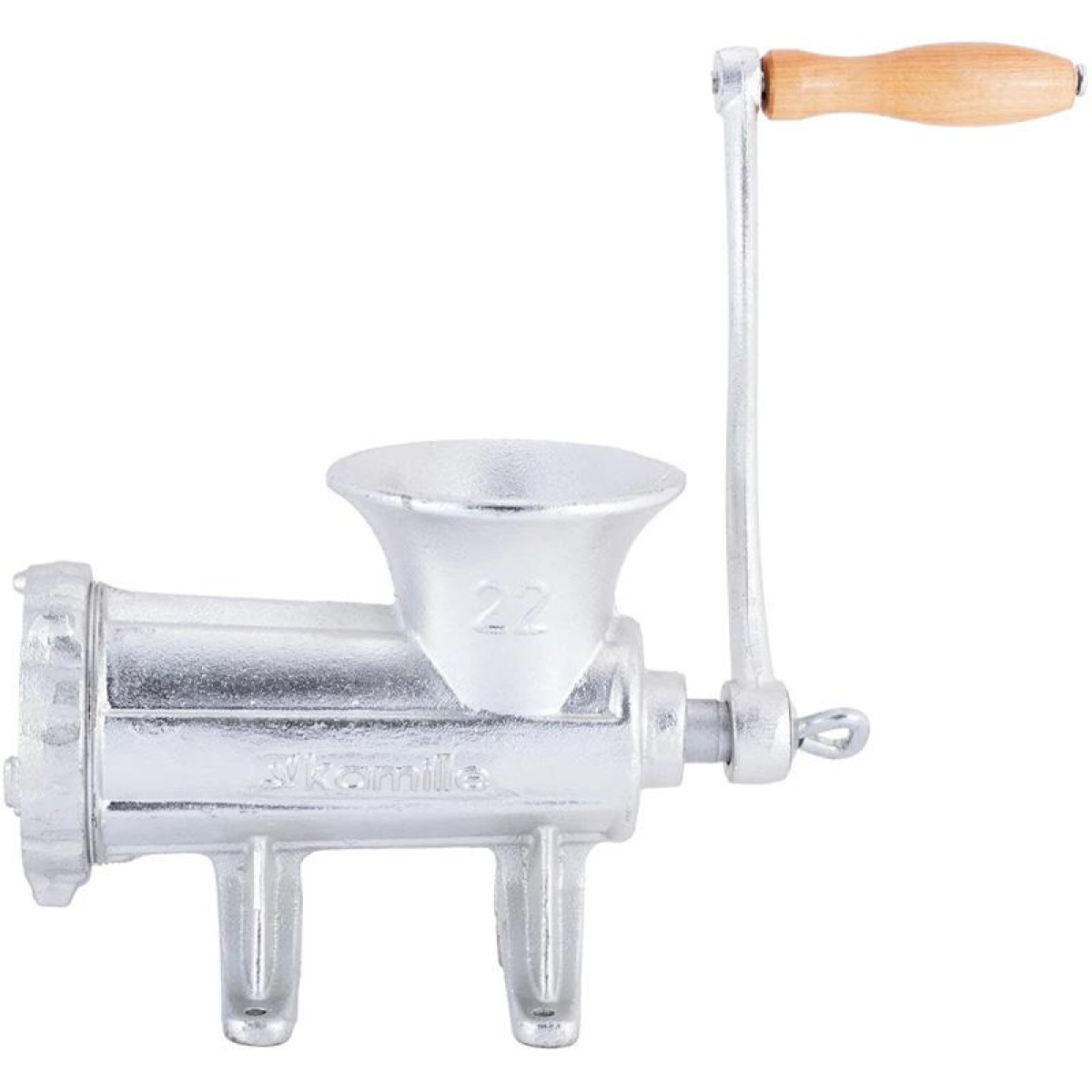 Классическая ручная мясорубка Kamille для переработки мясных продуктов в фарш. Можно использовать для приготовления томатного сока или фруктового пюре. Изготовлена из чугуна с оцинкованным покрытием. Размер: 31х15х20.5см. В комплекте 4 внутренних стальных насадки Ø10см с отверстиями разного диаметра для регулировки интенсивности помола. БОНУС - в комплект входит 3 пластиковых насадки для наполнения колбас (Ø2.5см, Ø2см, Ø1.5см). Рукоять 29см с деревянной ручкой. Мясорубка надежна и проста в эксплуатации. Её легко мыть и можно компактно хранить в разобранном виде.
