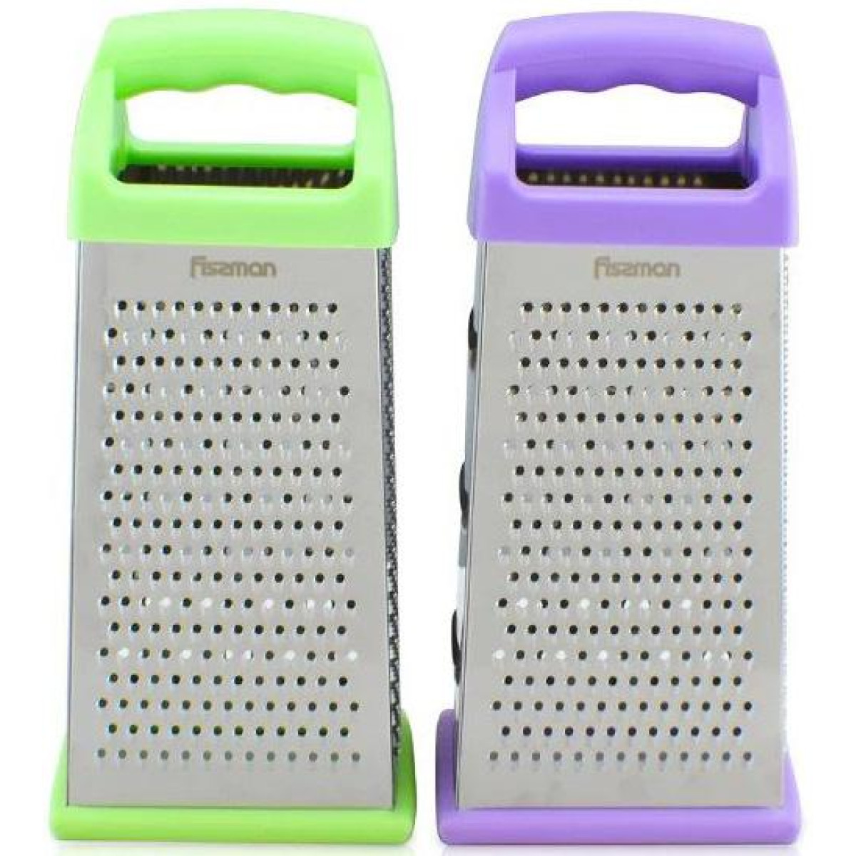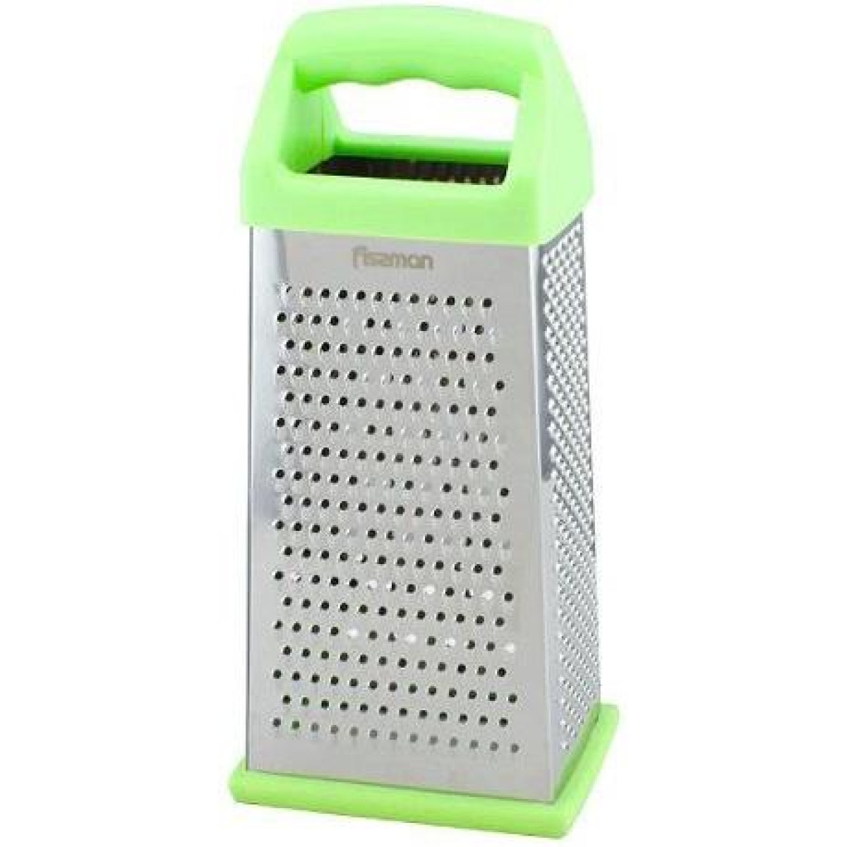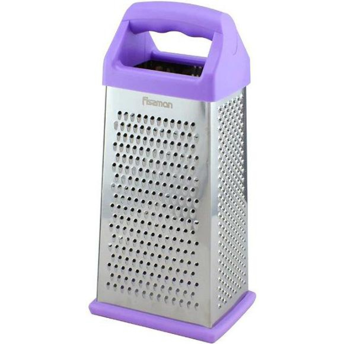 Терка 4-х гранная Fissman Meotida. Рабочая поверхность выполнена из нержавеющей стали. Твердая прочная пластина не прогибается даже во время измельчения твердых продуктов. 4 типа лезвий - крупная терка, средняя, мелкая и шинковка. Удобная пластиковая ручка с силиконовой вставкой приятная на ощупь. Удобно располагается в руке и не выскальзывает, что очень важно при работе с острыми лезвиями терки. Съемный силиконовый протектор на основании для защиты от скольжения. Цвет на выбор: салатовый или сиреневый. Высота 24см основание 11х8.5см.