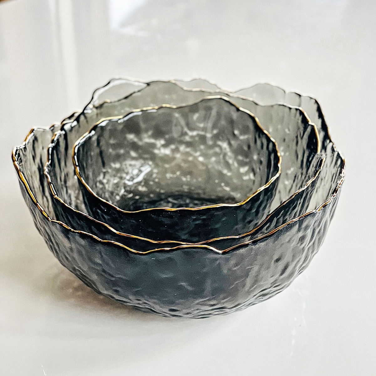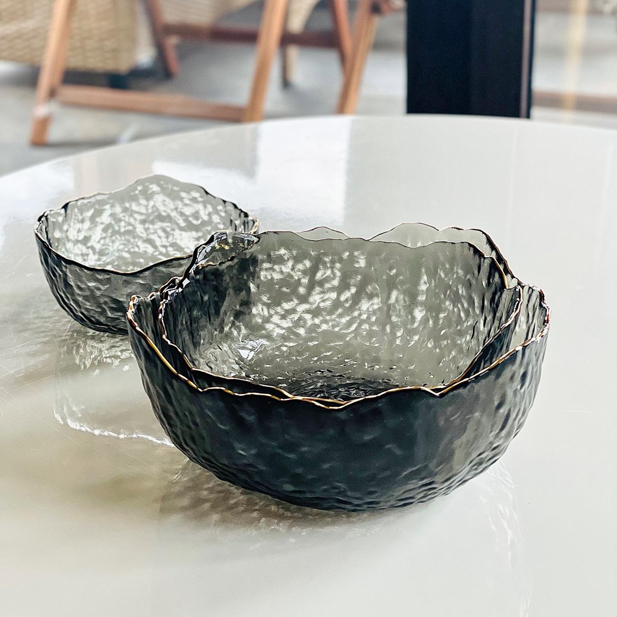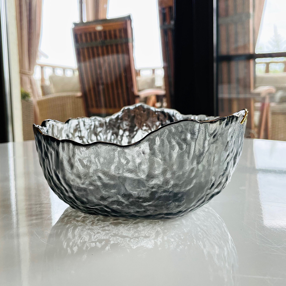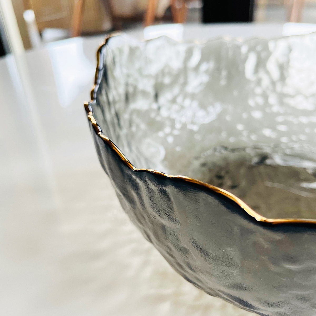 Салатник стеклянный 20 см Золотая Маковка черный с золотой каймой