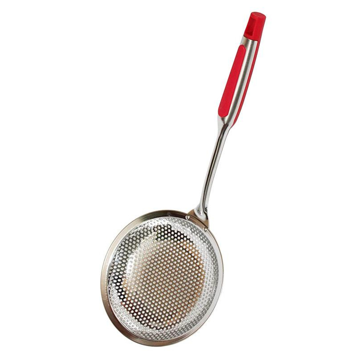 Шумовка Dynasty BaoPing - крепкий и надежный аксессуар для кухни. Для профессионального и домашнего использования. Шумовка изготовлена из прочной высококачественной нержавеющей стали 18/10. Надежный и гигиеничный материал, безопасный даже при длительном контакте с продуктами любого типа. Диаметр 14см, длина шумовки - 37см. Массивная крепкая ручка с клепочным креплением и яркой пластиковой вставкой для безопасности рук. Диаметр отверстий - около 3мм. Шумовку Dynasty BaoPing можно мыть в посудомоечной машине.