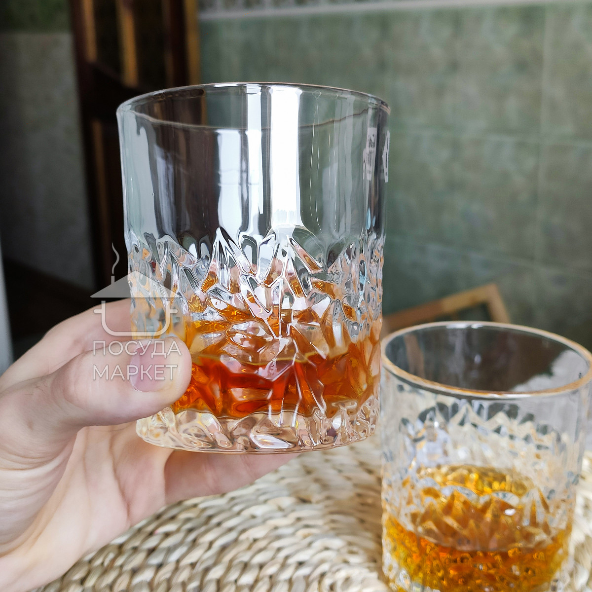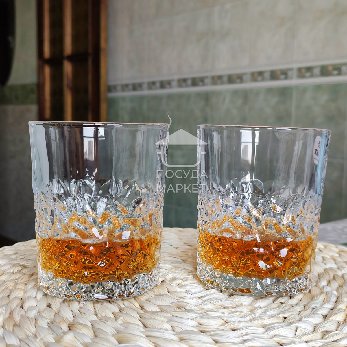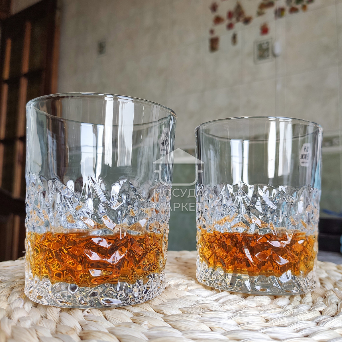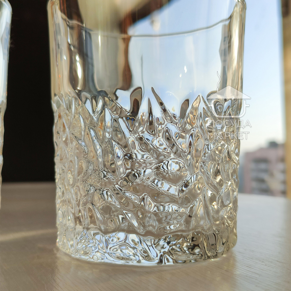 Ці склянки для віскі привертають увагу своєю незвичайною гранованою структурою, що нагадує поверхню огранованого каменю. Нижня частина прикрашена складним рельєфним візерунком, що створює гарну гру світла та підкреслює колір напою. Міцні та важкі, вони ідеально підходять для подачі міцних напоїв, таких як віскі чи бурбон. Елегантний дизайн робить їх чудовим вибором як для домашнього бару, так і для подарунка поціновувачам якісного скла.