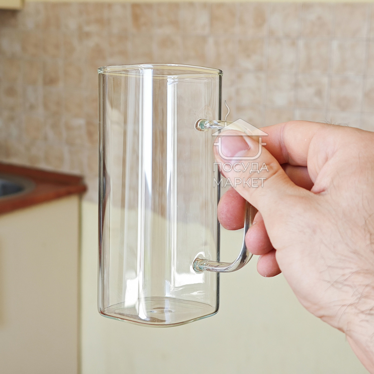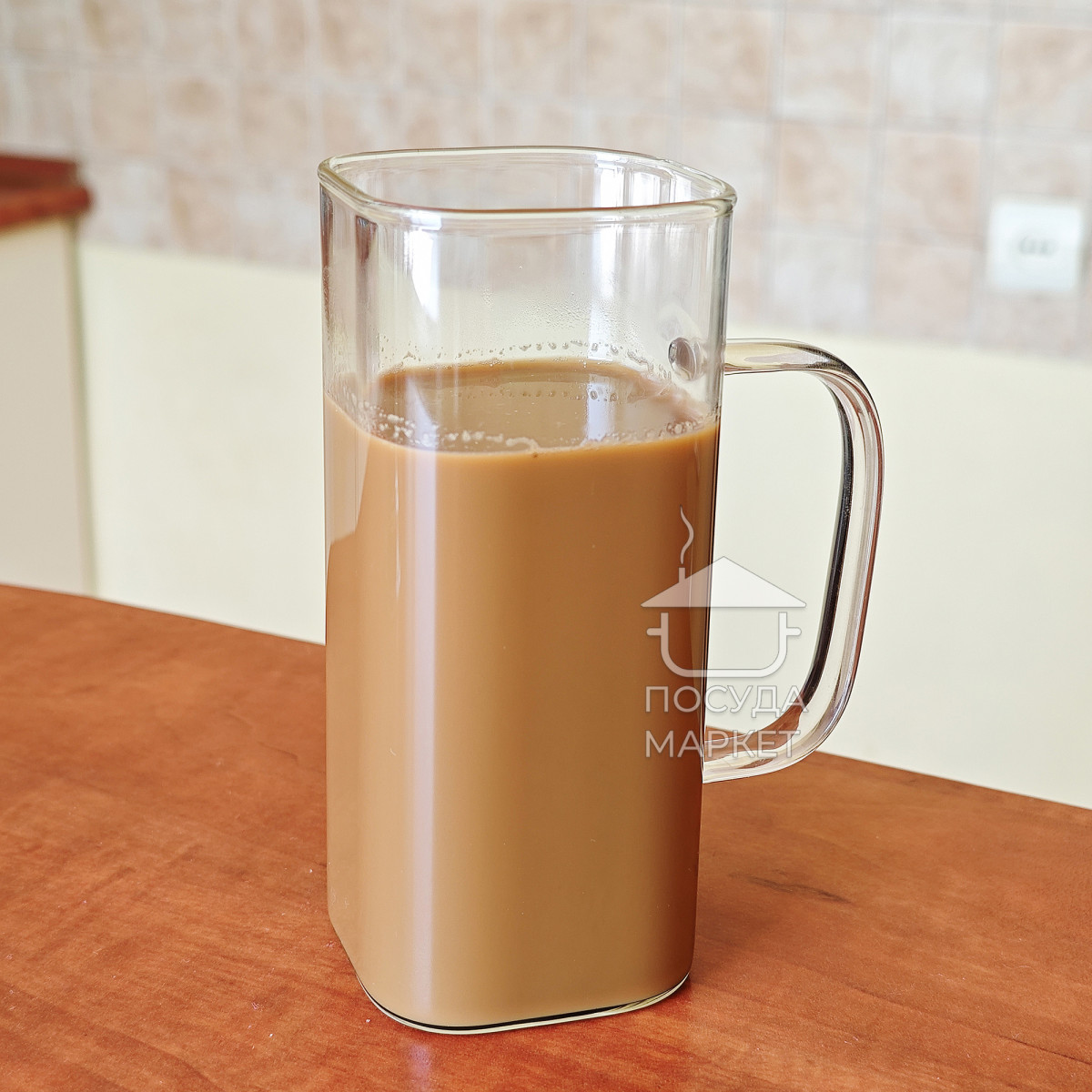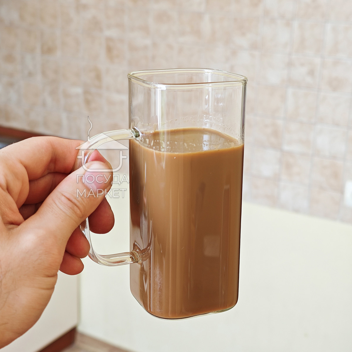 Кружка з мінімальним дизайном та прямокутними формами. Прямі лінії та кути надають їй сучасного та стильного вигляду. Завдяки тонкому, але міцному склу та зручній ручці, кухоль підходить як для гарячих напоїв, так і для холодних. Прозорість матеріалу підкреслює шари напоїв, роблячи її ідеальною для подачі кави, латте чи інших багатошарових коктейлів. Стійке дно та зручна форма ручки роблять її максимально практичною та елегантною.