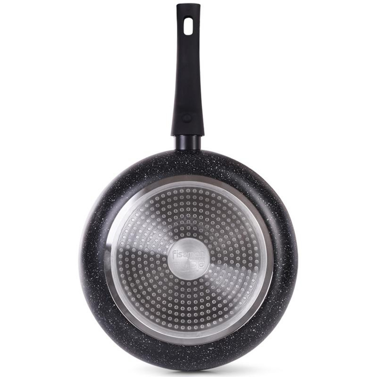 Сковорода Fissman FIORE с мраморным антипригарным покрытием. Диаметр 24см, высота - 4.9см, диаметр дна 16см, длина ручки 19.5см. Изготовлена из кованого алюминия - лучший материал для жарки и тушения продуктов. Быстро и равномерно прогревается, особо устойчива к деформации. Надежная и экономичная сковорода с индукционным дном. Годится для всех типов плит, включая индукционные и стеклокерамические. Антипригарное покрытие BioEcoCeramica с добавлением мраморной крошки - обеспечивает сковороде чрезвычайную надежность и великолепные антипригарные свойства. Съемная бакелитовая ручка практически не нагревается, не скользит и приятная на ощупь. Сковороду можно использовать в духовом шкафу.