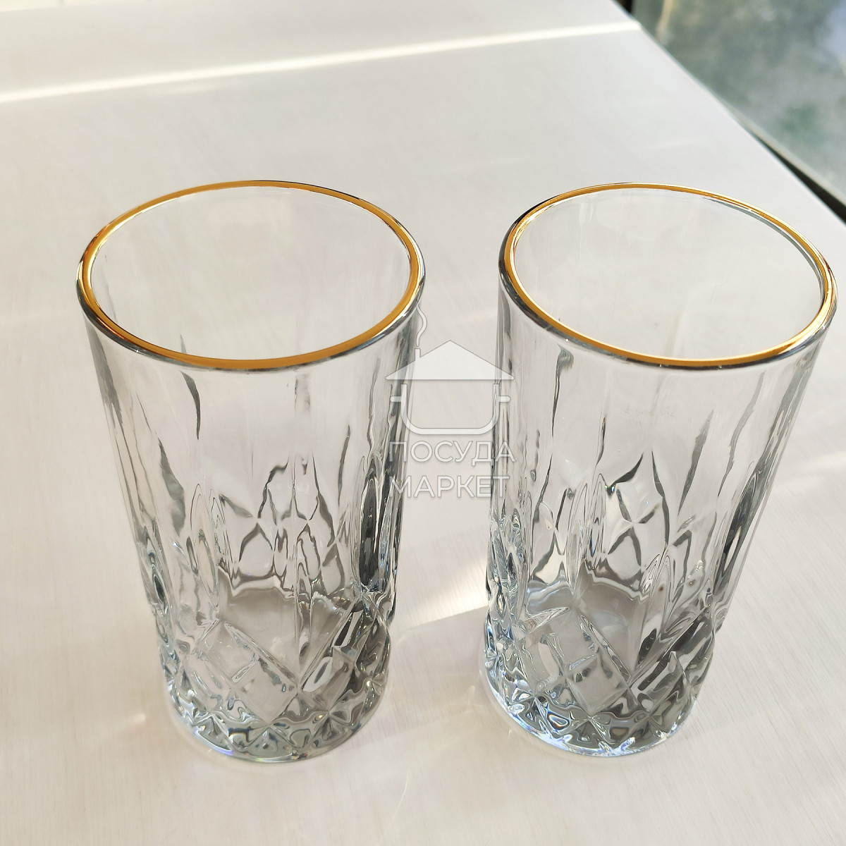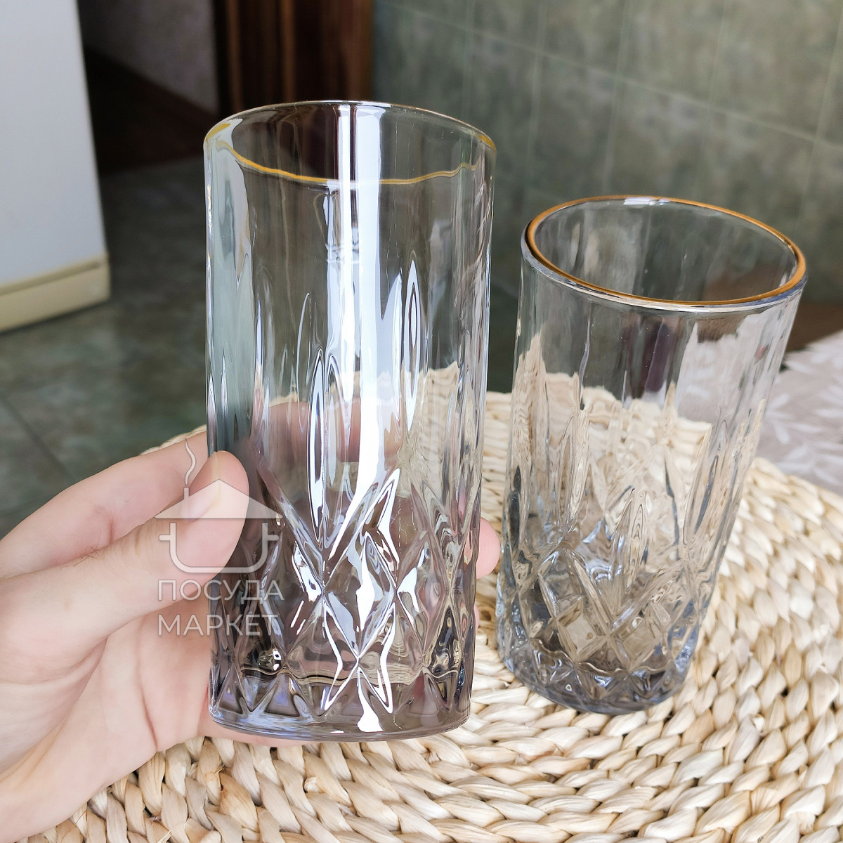 Набір 6 високих склянок 340 мл Smoke Crystal з гранованою структурою товстого скла для коктейлів, соку, води