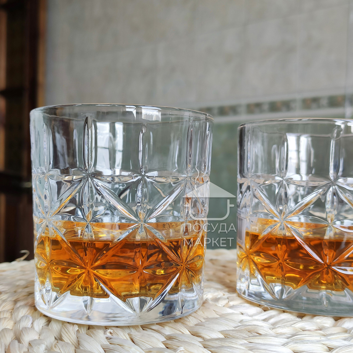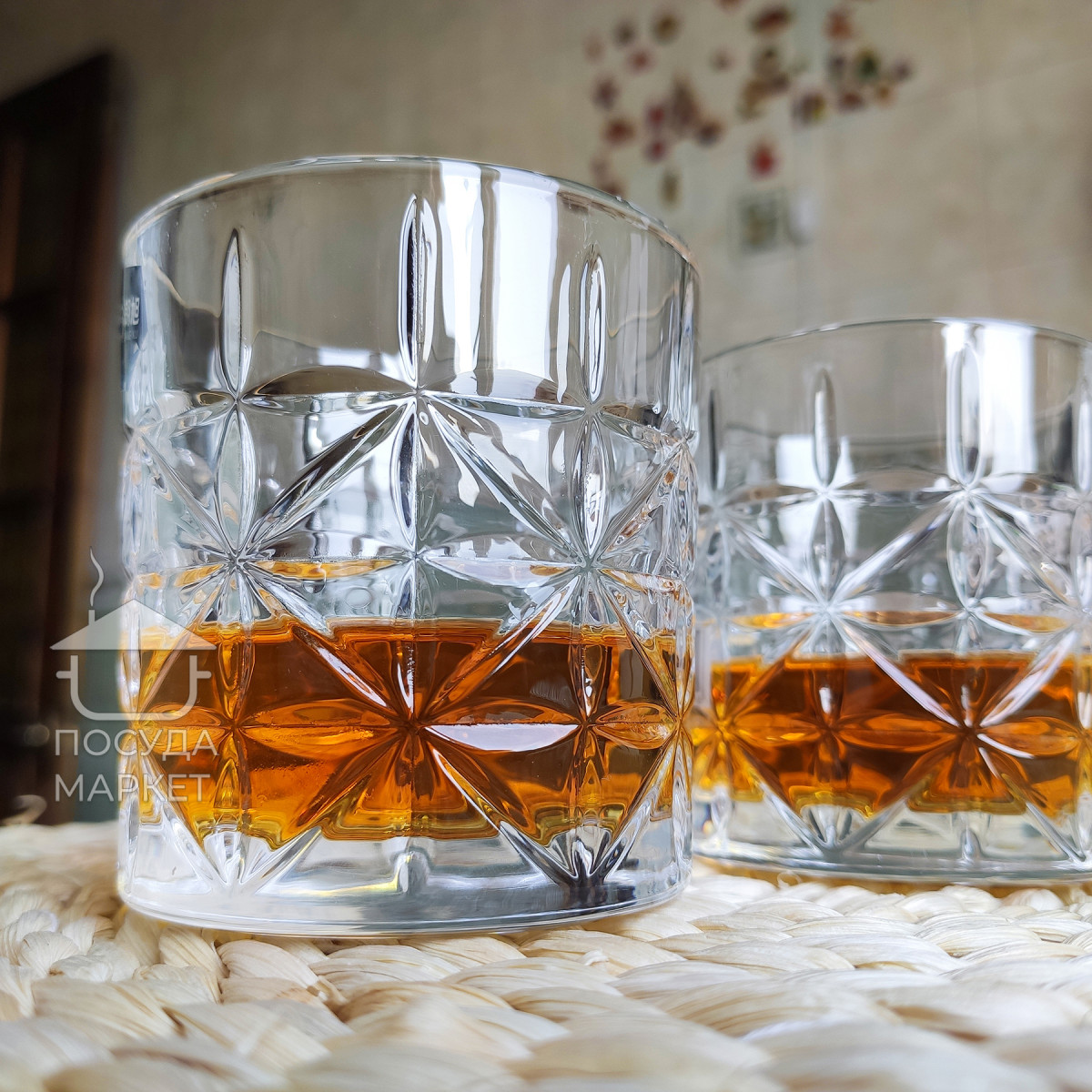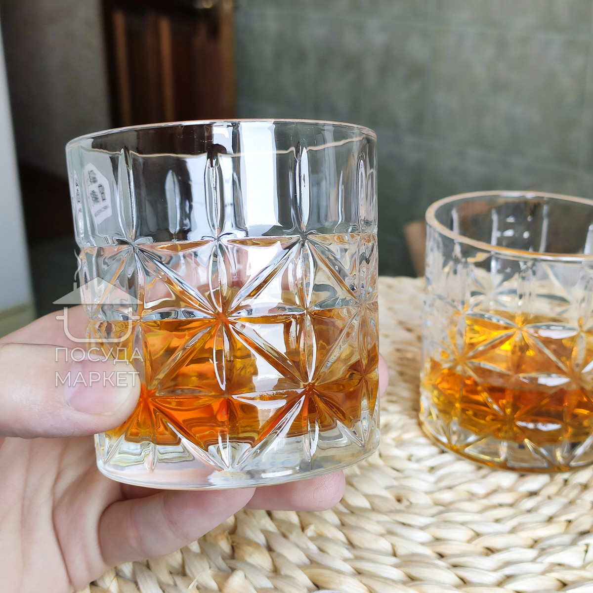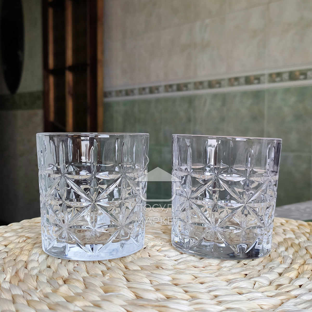 Эти стаканы привлекают внимание своим рельефным узором в виде звёзд, который покрывает всю их поверхность. Гравировка создаёт эффект трёхмерного рисунка, что добавляет визуальной глубины и красиво преломляет свет. Стаканы достаточно прочные, с утолщённым дном, благодаря чему они устойчивы на любой поверхности. Идеально подходят для подачи крепких напитков или коктейлей, подчеркивая их насыщенный цвет. Такой дизайн объединяет в себе классику и современный стиль, делая их отличным вариантом как для домашнего бара, так и для подарка.