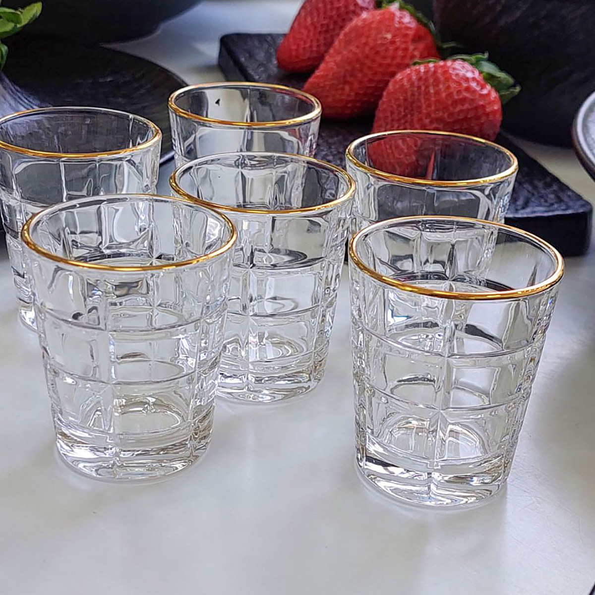Набір 6 чарок 50 мл Fortress з прозорого скла та золотим обідком