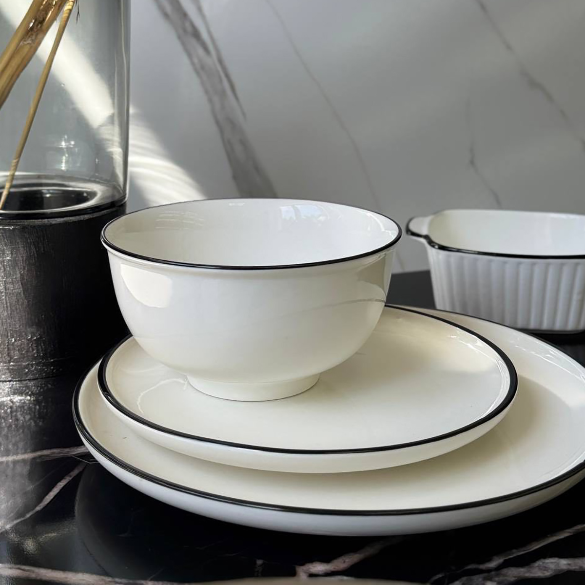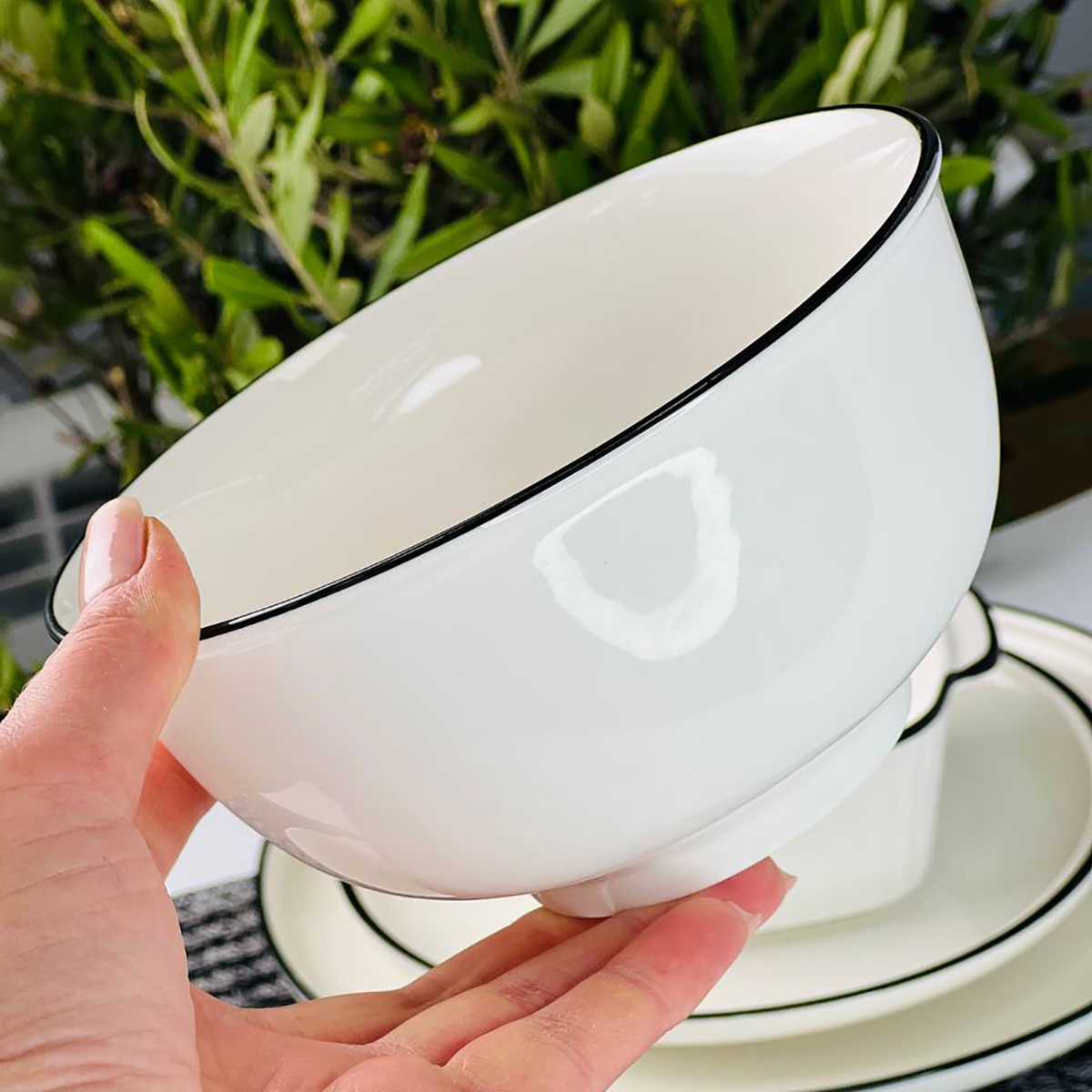 Лаконичный белый цвет в сочетании с элегантной черной окантовкой придает изделию современный вид и позволяет легко сочетать его с другой посудой. Благодаря крепкому материалу салатник устойчив к ежедневному использованию, хорошо сохраняет температуру блюд и легко очищается.