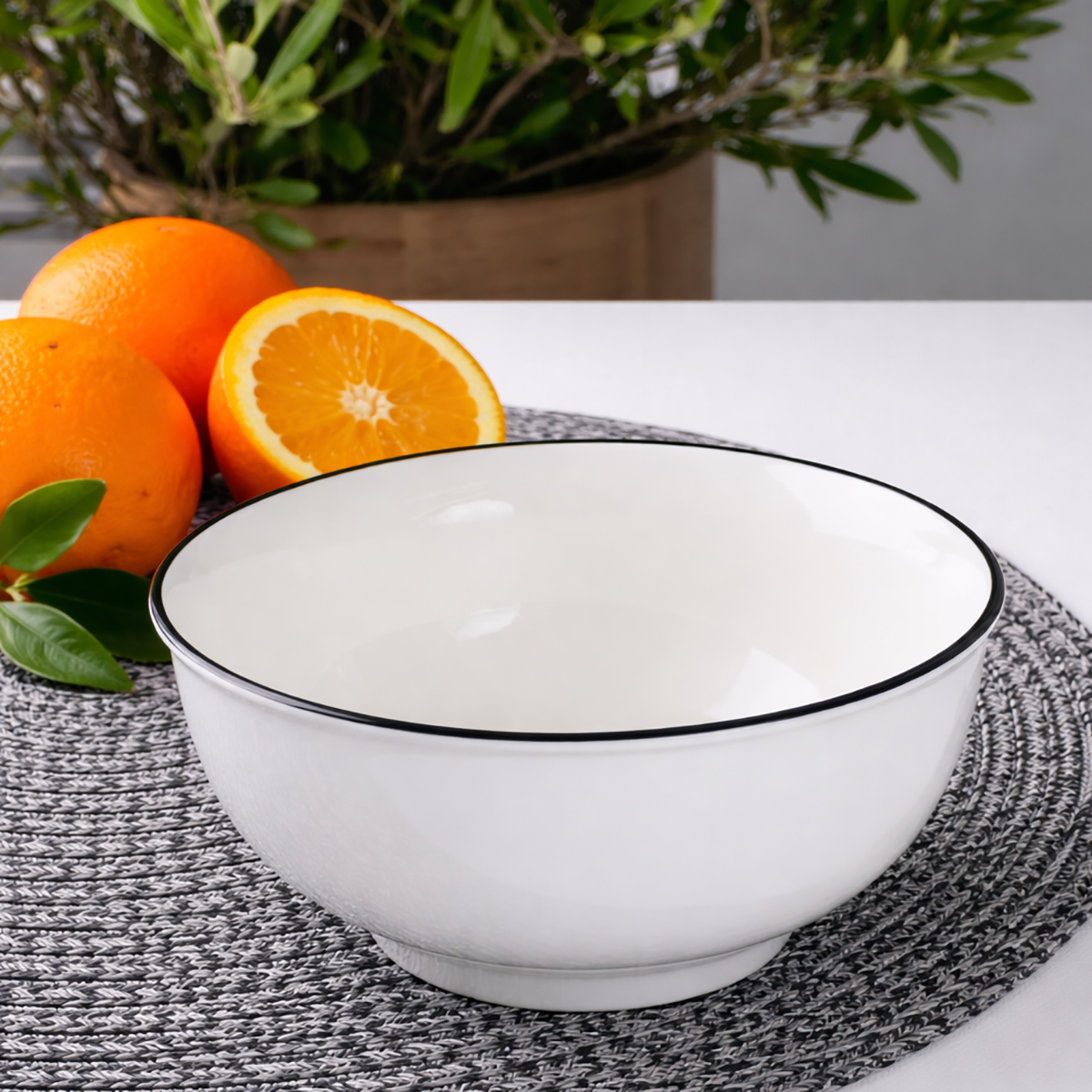 Салатник круглый 15х7 см Velora 700 мл, керамика, белый с черной окантовкой