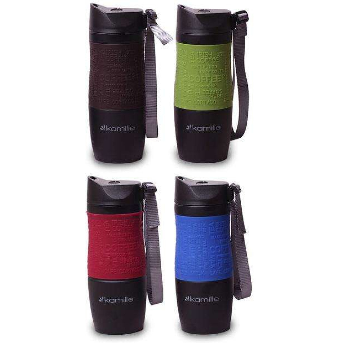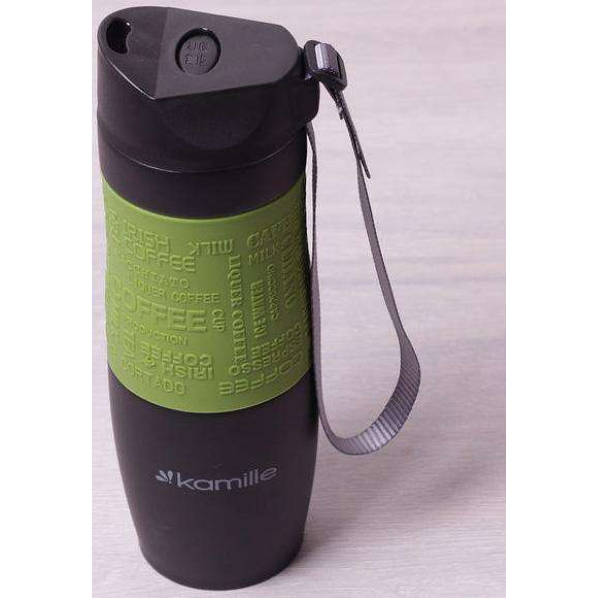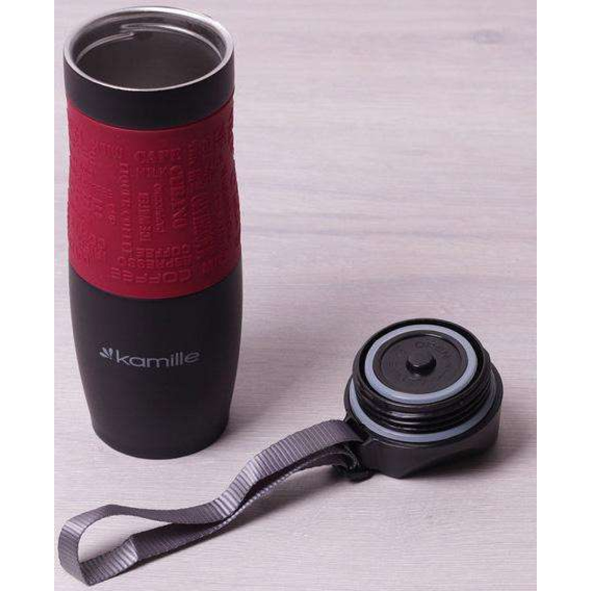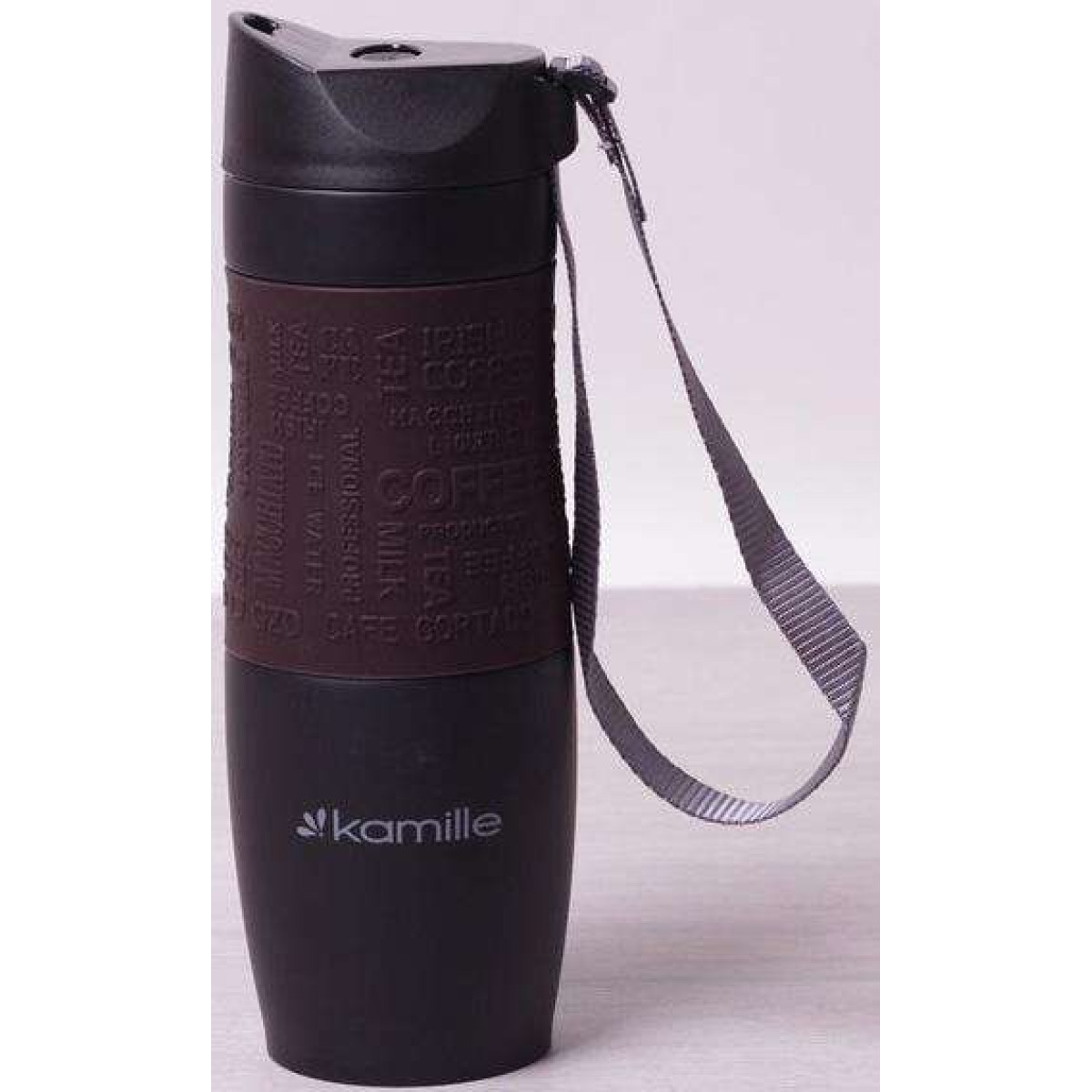 Термокружка Kamille Coffee 480мл з ремінцем, нержавіюча сталь