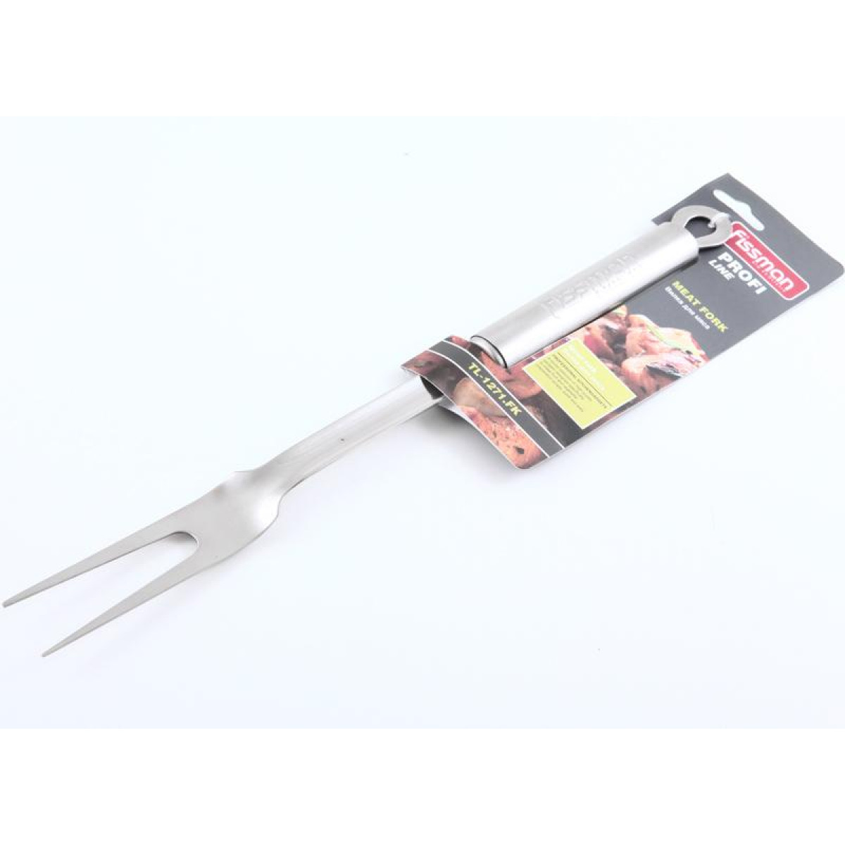 Вилка поварская Fissman PROFI - готовьте профессионально. Прочный и надежный кухонный инструмент. Изготовлено из высококачественной нержавеющей стали 18/10 - устойчива к коррозии и окислению при контакте с пищей. Не окрашивается и не впитывает запахи, не меняет вкус и аромат продуктов. Выдерживает высокие температуры. Полностью безопасно при контакте с пищей любого типа. Длина 33см. Надежная стальная ручка с кольцом для удобного хранения и подвешивания. Можно мыть в посудомоечной машине.